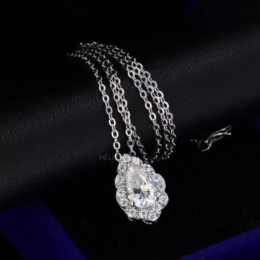 Pear Cut Halo Moissanite Necklace With Hidden Loop