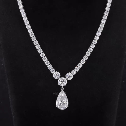 Solitaire Pear & Round Cut Moissanite Bridal Necklace