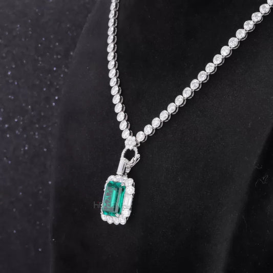 Elegant Emerald & Round Moissanite Bezel Chain Necklace