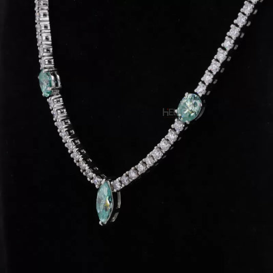 Oval, Marquis & Round Cut Blue-Green Moissanite Tennis Necklace