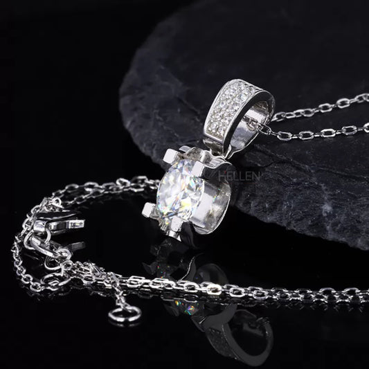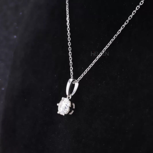 Round Cut Solitaire Moissanite Solid Square Prong Necklace