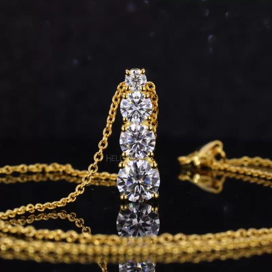 Round Cut Small Ascending Line, Long Pendant Necklace