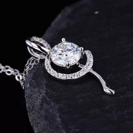 Round Cut Solitaire & Music Notes Moissanite Necklace