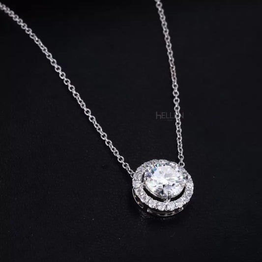Everyday Round Cut Halo Moissanite Necklace