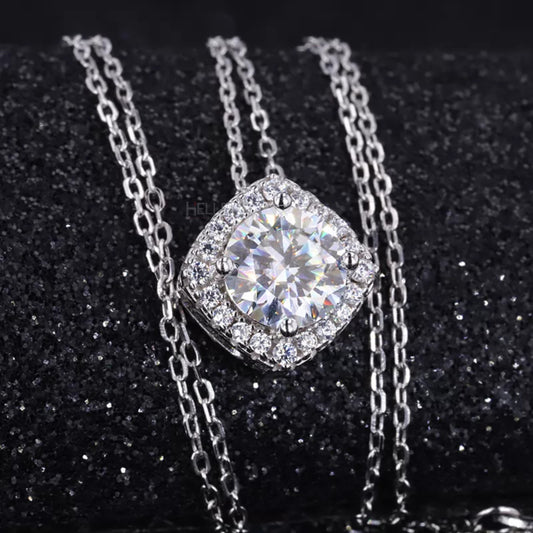 Halo Round Cut Moissanite Cushion Shape Necklace
