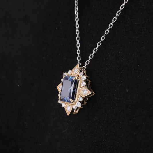 Spirit Flower Blue Radiant Cut Sapphire Gemstone Necklace