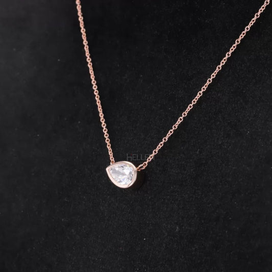 East To West Pear Cut Moissanite Solitaire Bezel Setting Necklace