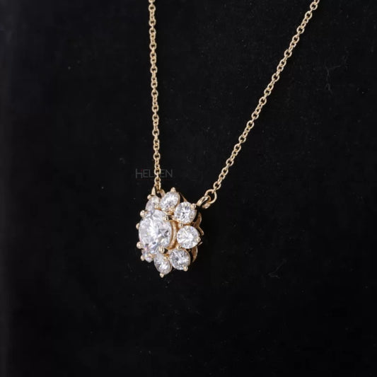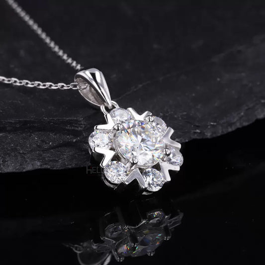 Floral Style Solitaire Round Cut Halo Moissanite Necklace