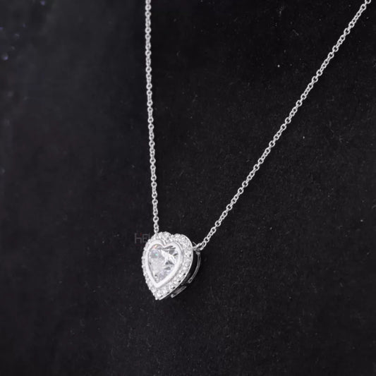 Heart Cut Solitaire Halo Moissanite Necklace For Bridesmaid