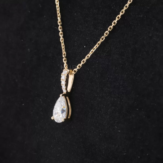Fancy Pear Cut Drop Solitaire & Round Moissanite Necklace