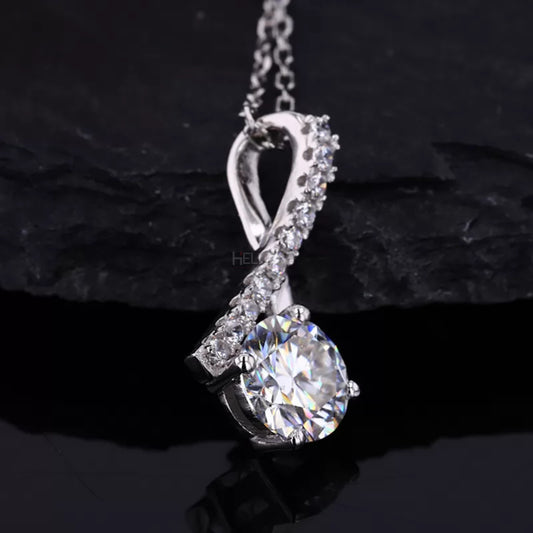 Round Cut Solitaire Twisted Hoop Moissanite Necklace