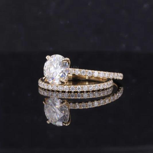 Round Cut Solitaire Moissanite Engagement Ring Set.