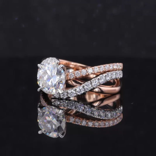 Round Cut Solitaire Moissanite Hidden Halo Engagement Ring