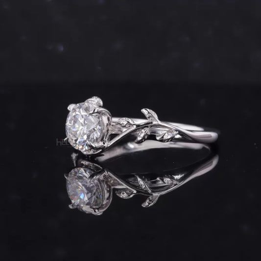 Round Cut Solitaire Moissanite Tree Leaf Branch Twist Engagement Ring