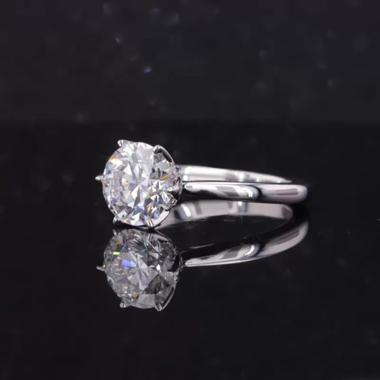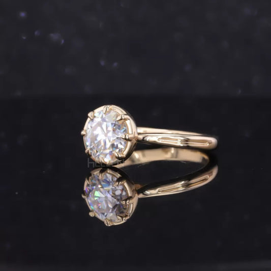 Old European Cut Moissanite Tiger Prong Solitaire Proposal Ring