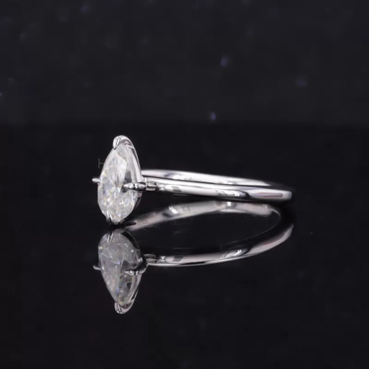 Pear Cut Solitaire Moissanite Tiger Prongs Engagement Ring