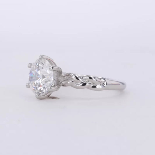 Solitaire Round Cut Moissanite Engagement Ring with Twisted Shank