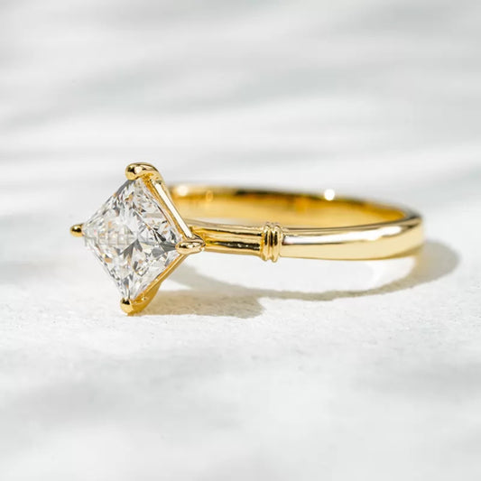 Unique Setting Princess Cut Solitaire Moissanite Engagement Ring