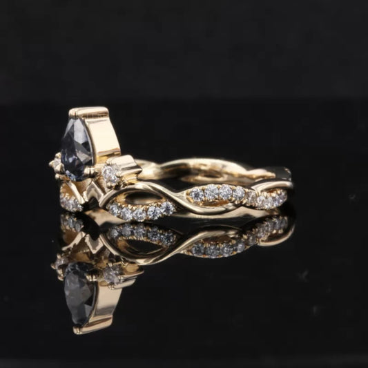 Round & Salt and Pepper Pear Cut V Curved Moissanite Wedding Band