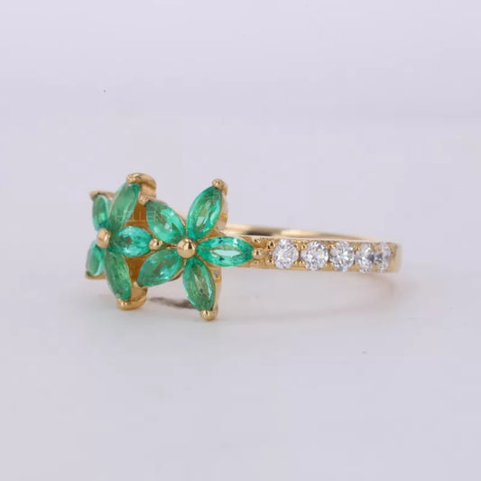Exclusive Green Gemstone and Moissanite Floral Ring