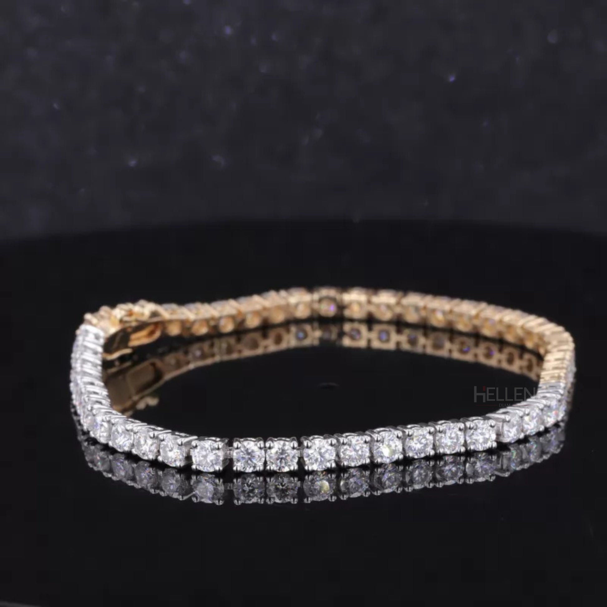 2-Tone Gold & White Round Moissanite Classic Tennis Bracelet