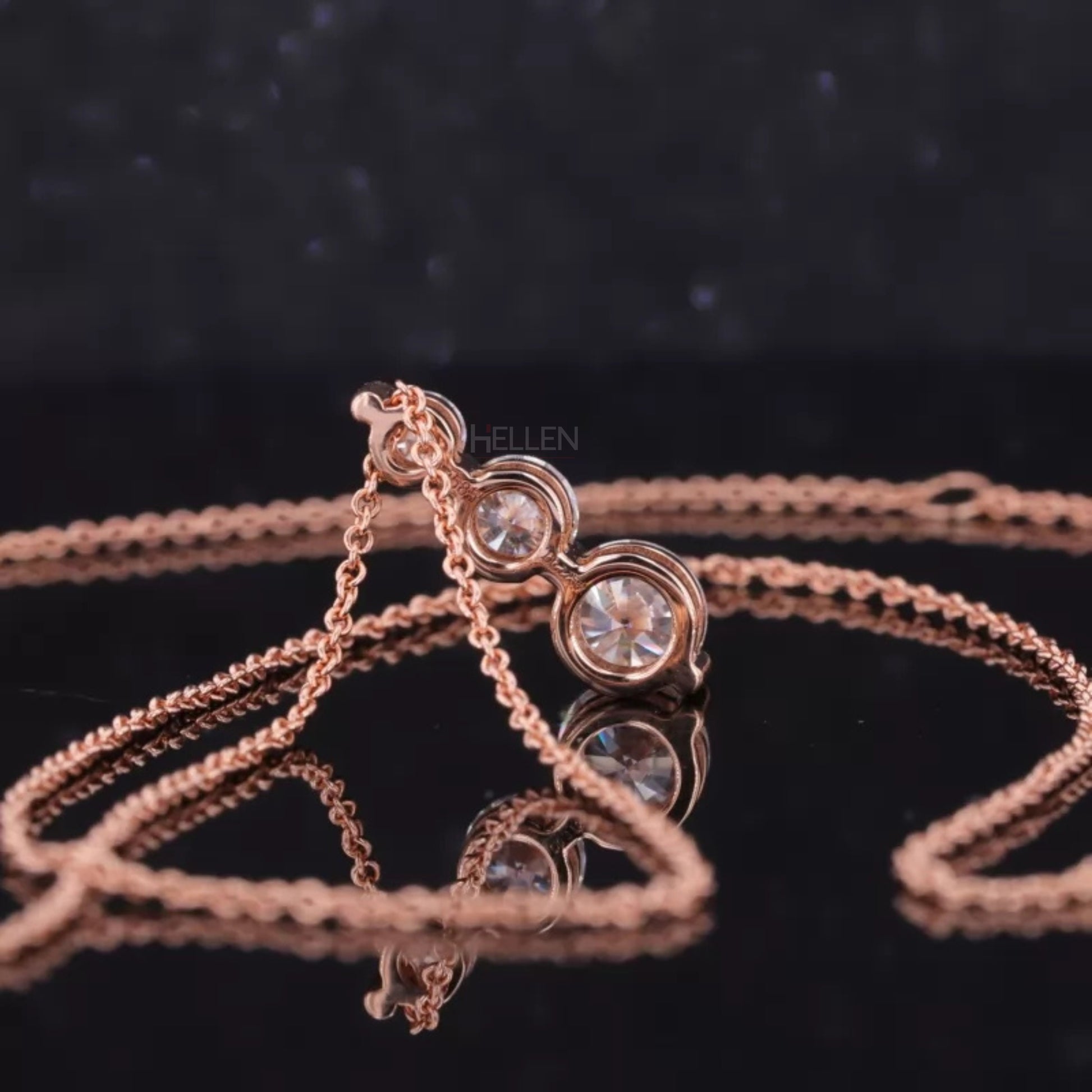 3 Stone Ascending Size Round Cut Moissanite Necklace