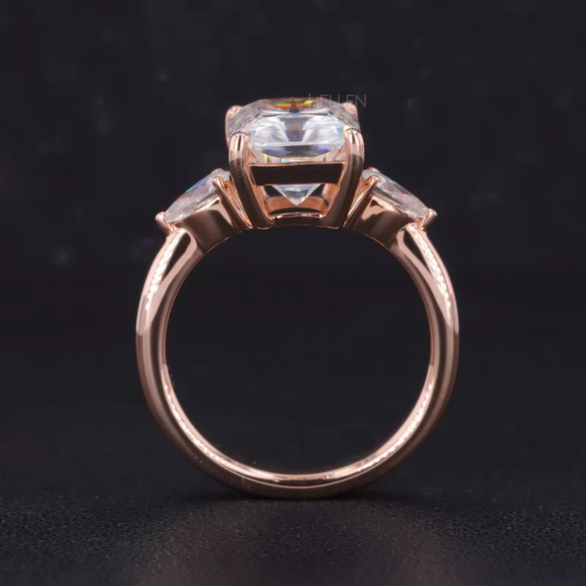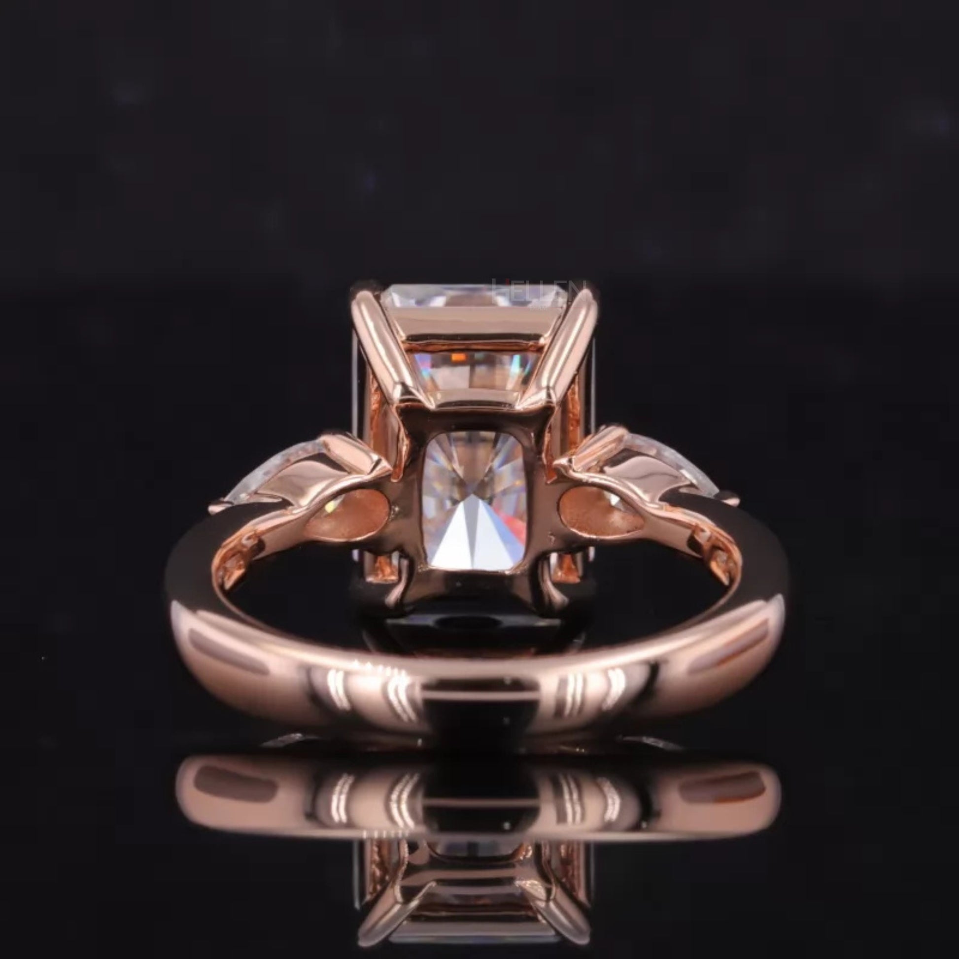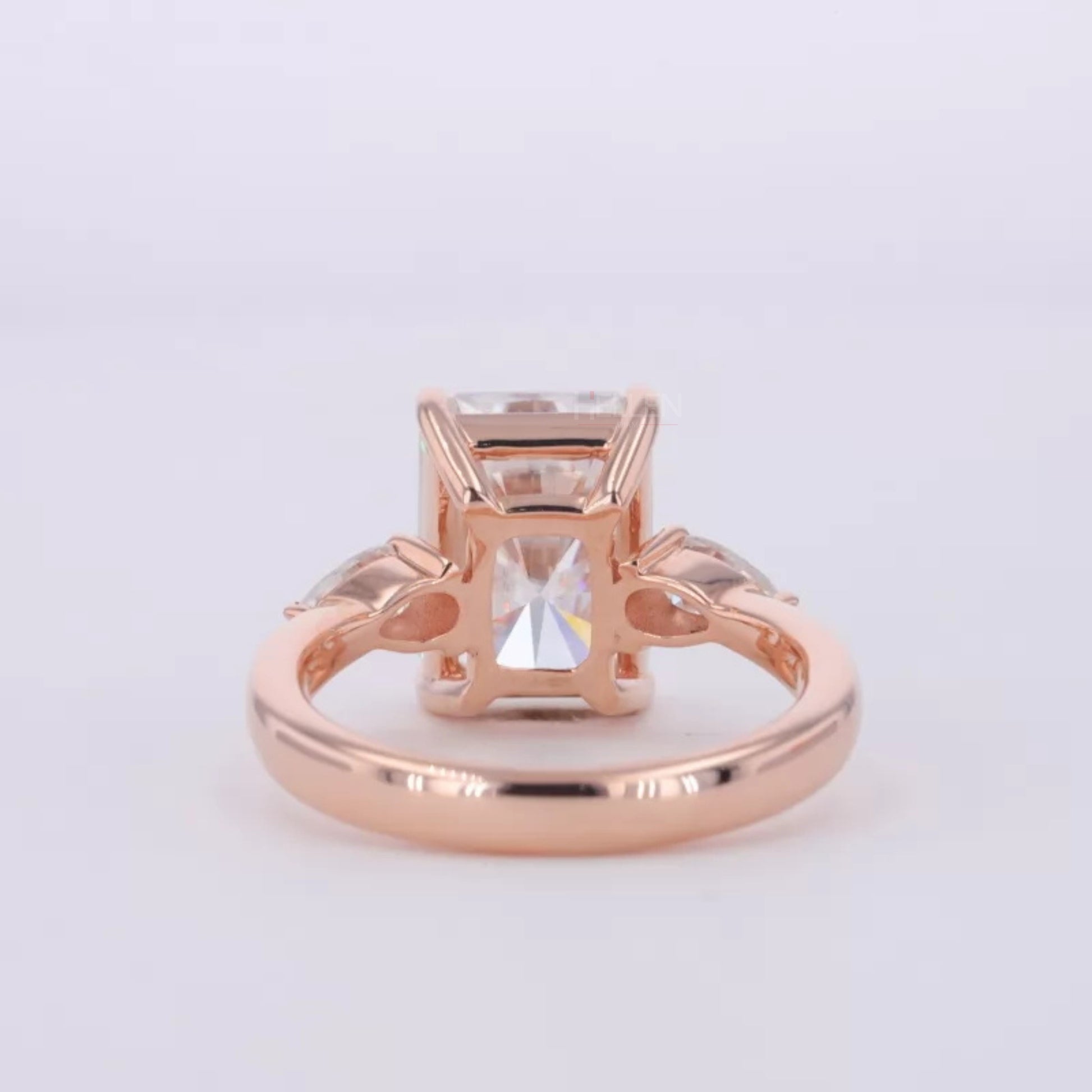 3 Stone Pear and Radiant Cut Moissanite Ring Pear Cut Side Stone - 925 Silver