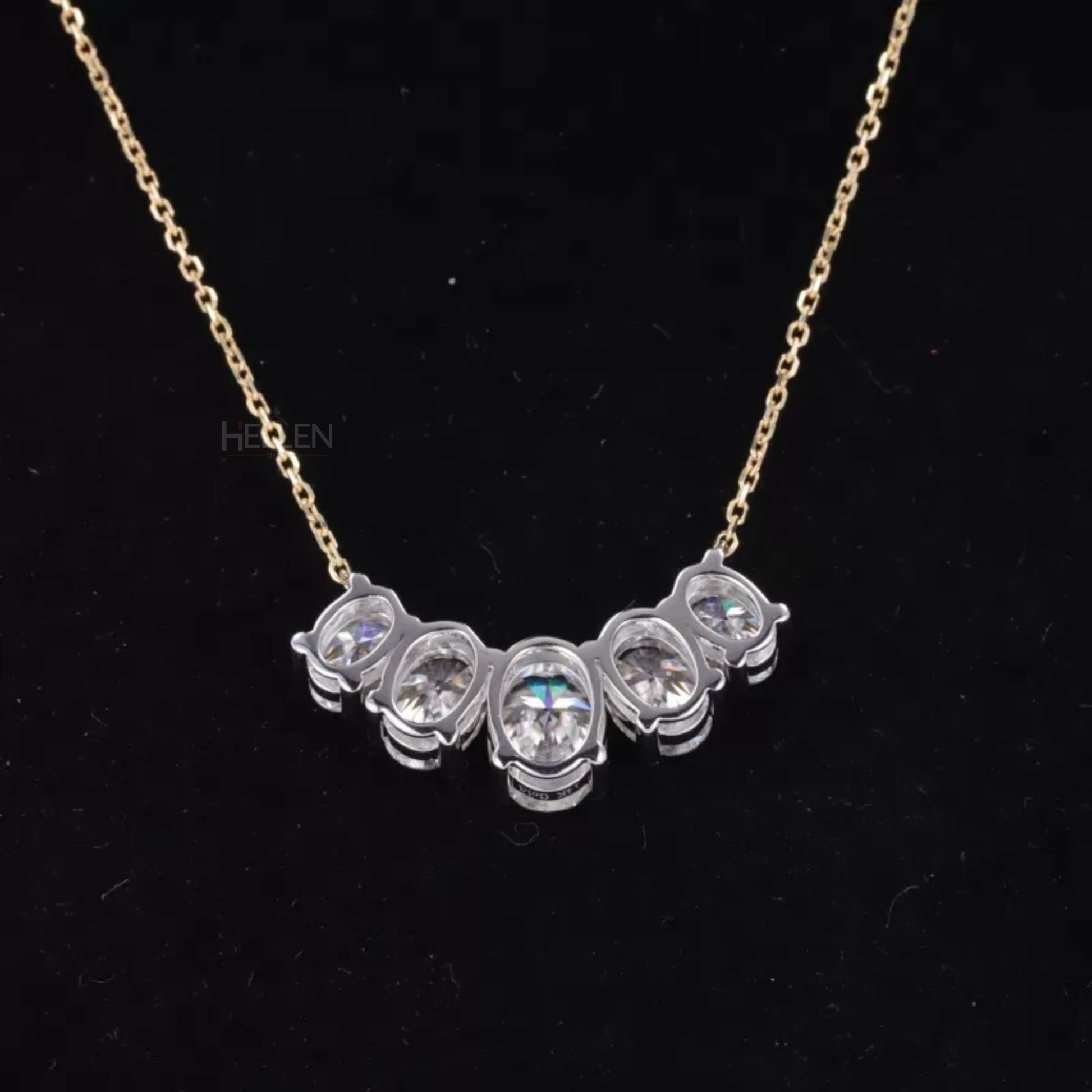 5 Stone Oval Moissanite Smiley Necklace for Everyday