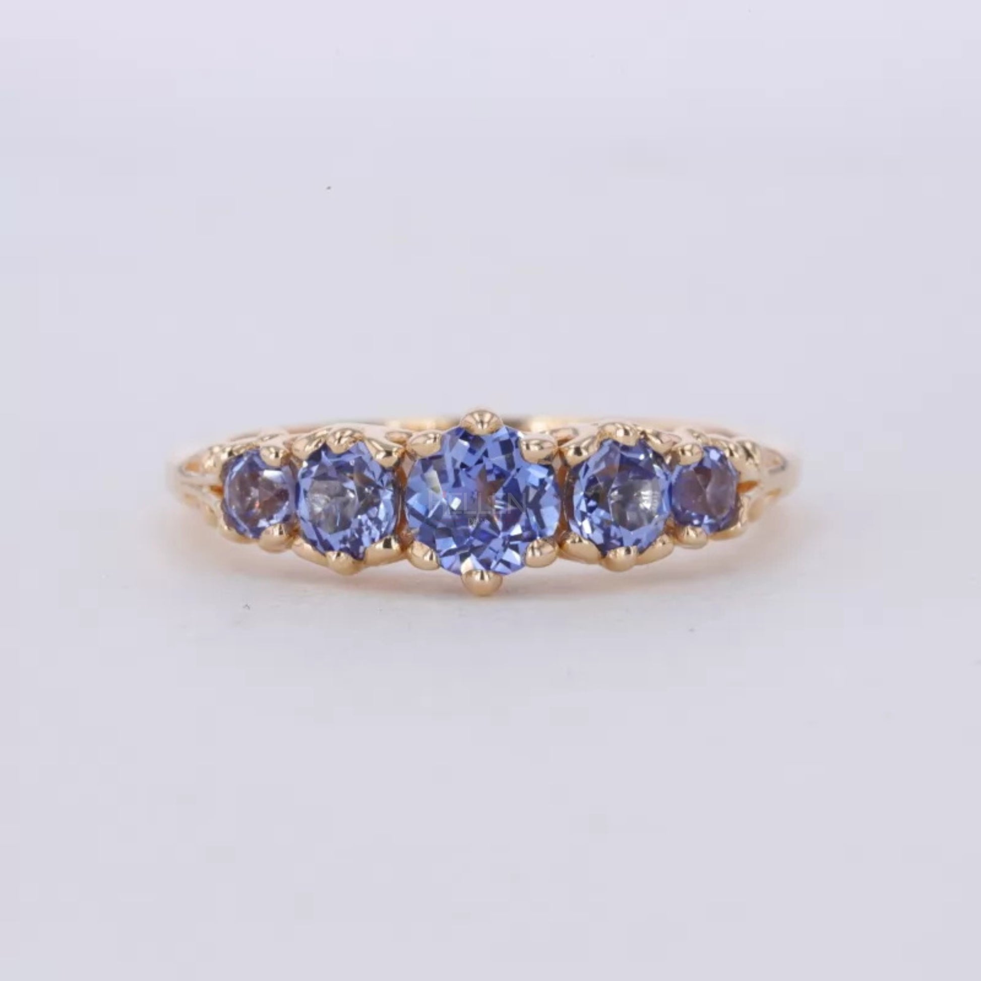 5 stone Purple Sapphire Gemstone Anniversary Ring