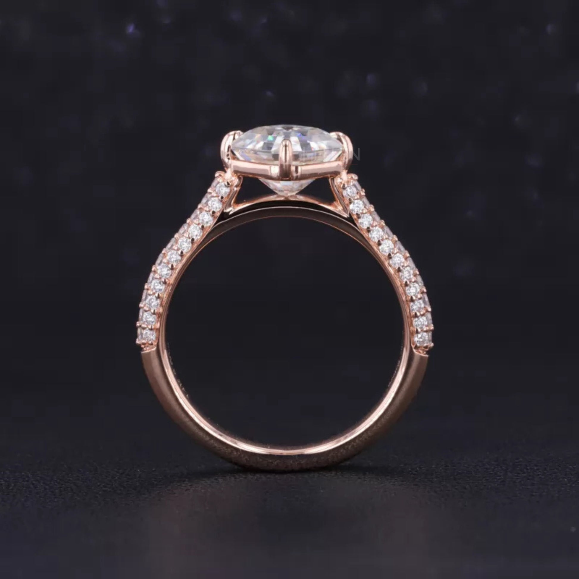 Asscher Cut Moissanite Solitaire Ring with Pave Diamond Shank