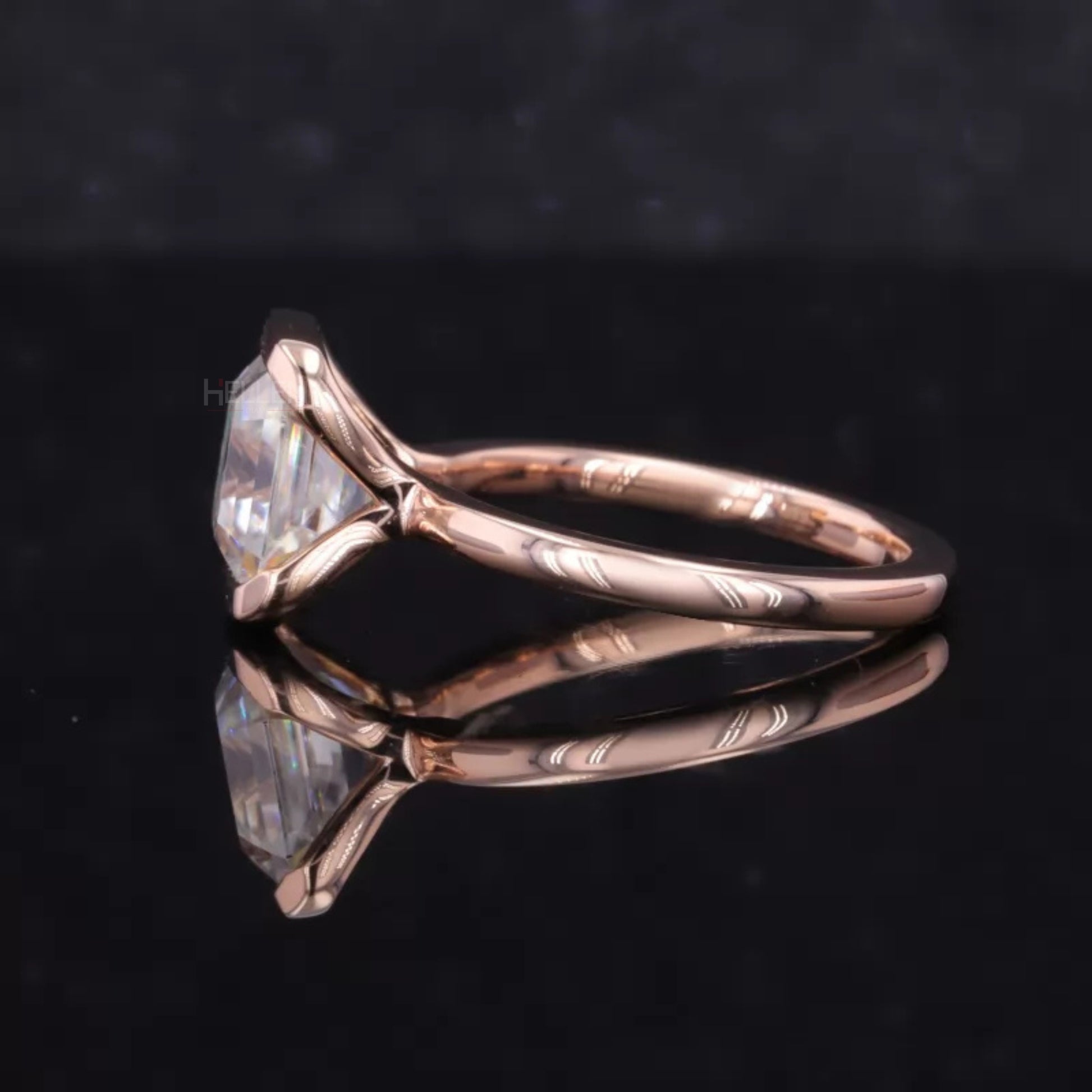Asscher Cut Moissanite Solitaire Engagement Ring With Unique setting