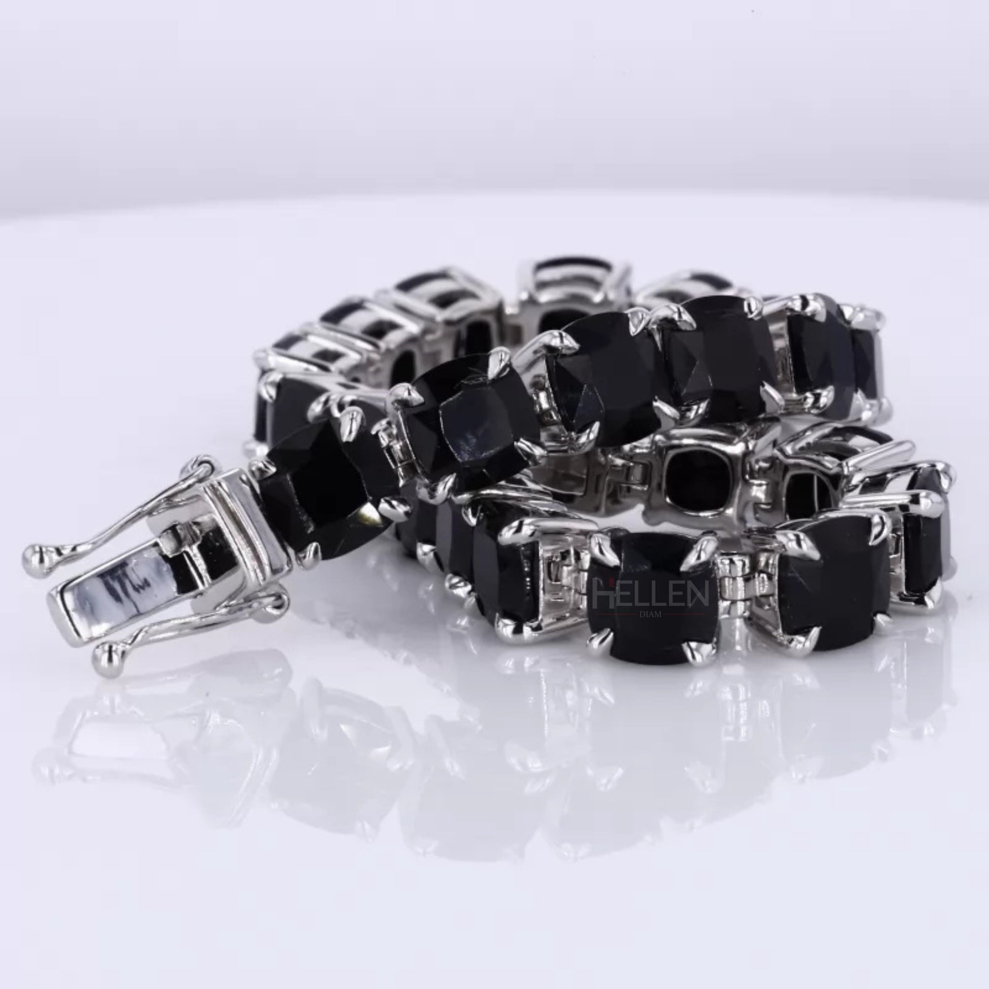 Black Cushion Cut Moissanite 4 Prong Tennis Bracelet