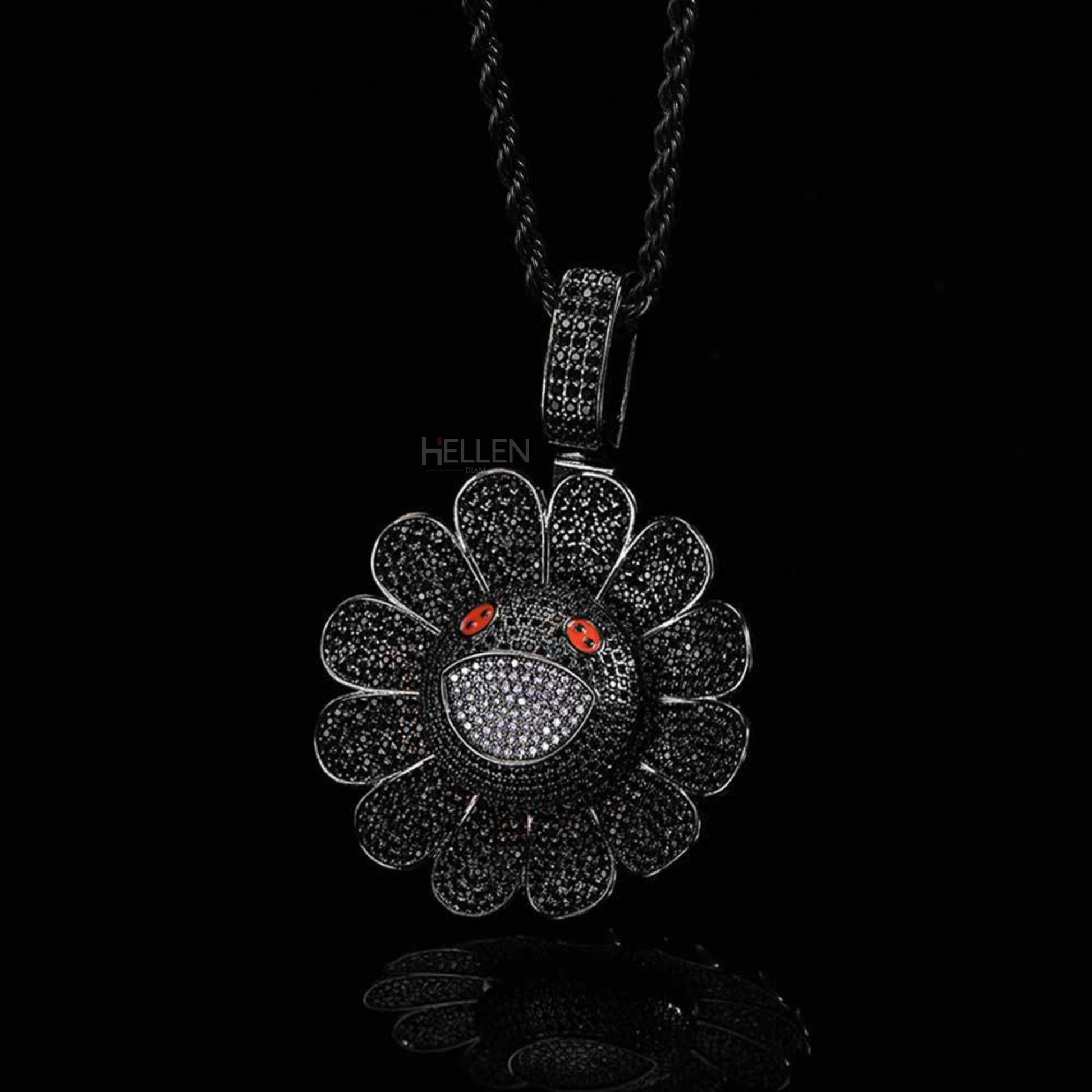 Blooming Spinning Sun Flower Pendant With Mixed Stones
