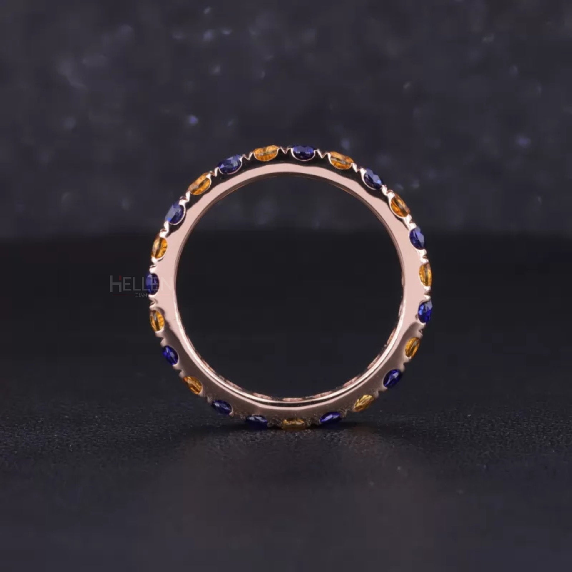 Blue And Yellow Sapphire Round Cut Full Eternity Wedding Band