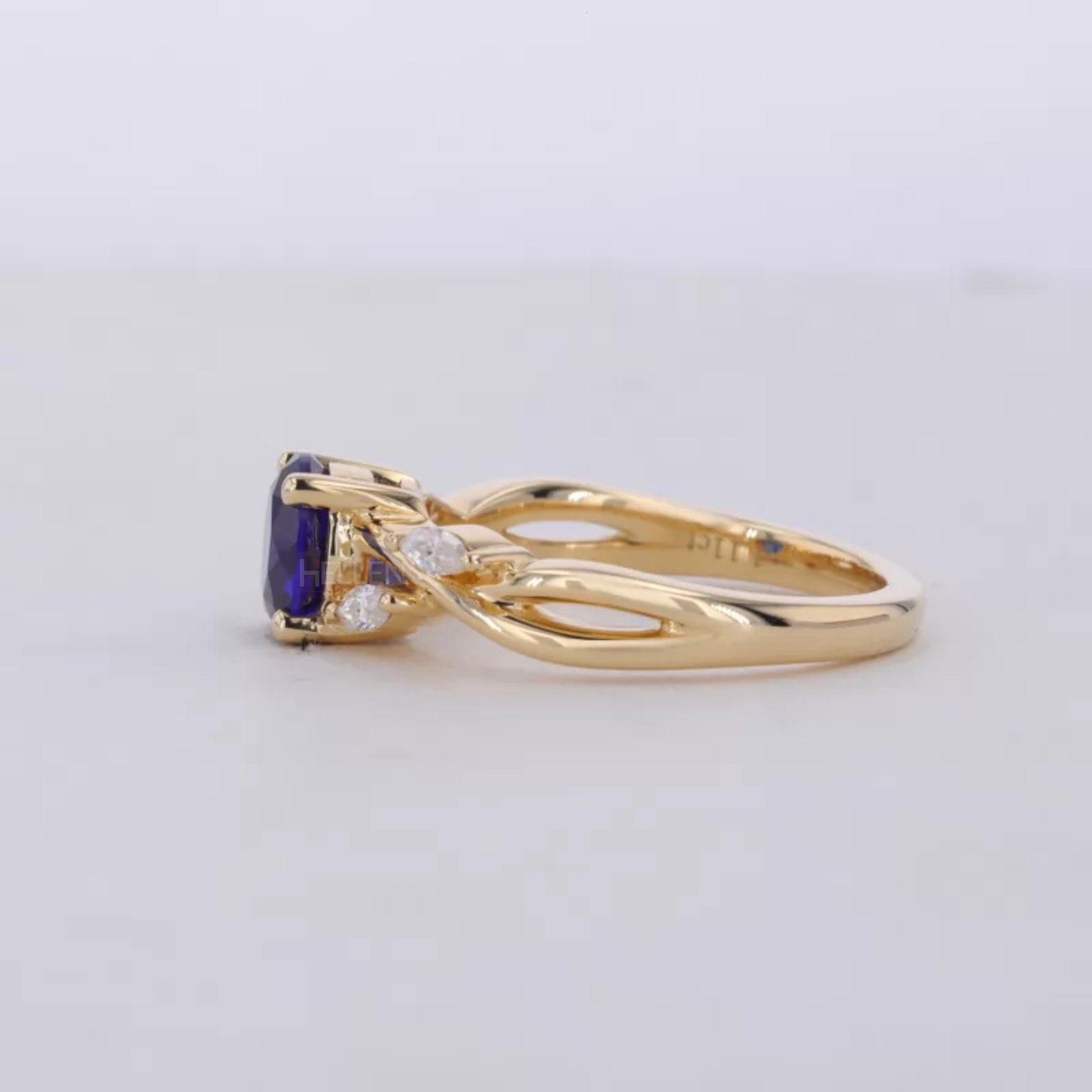 Blue Sapphire Round Cut Gemstone & Marquise Side Stone Ring
