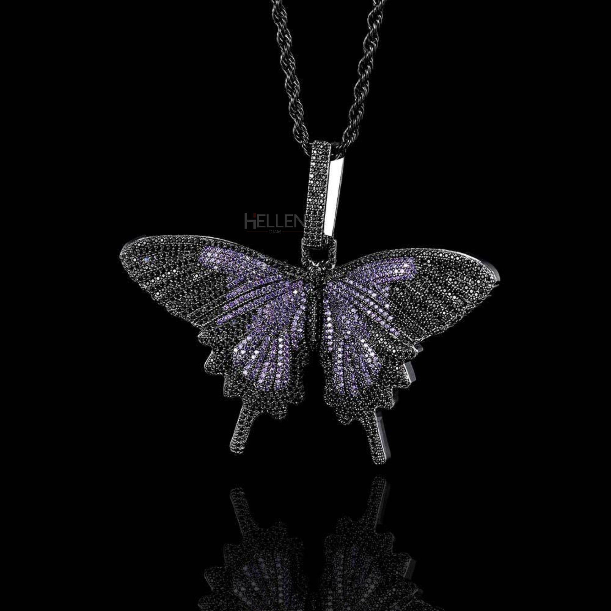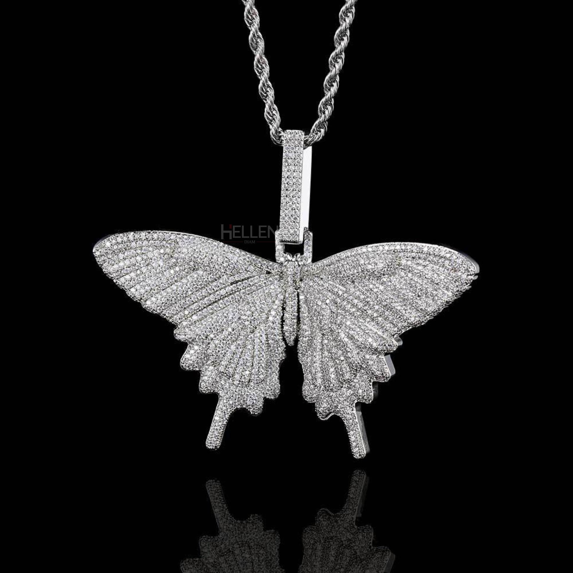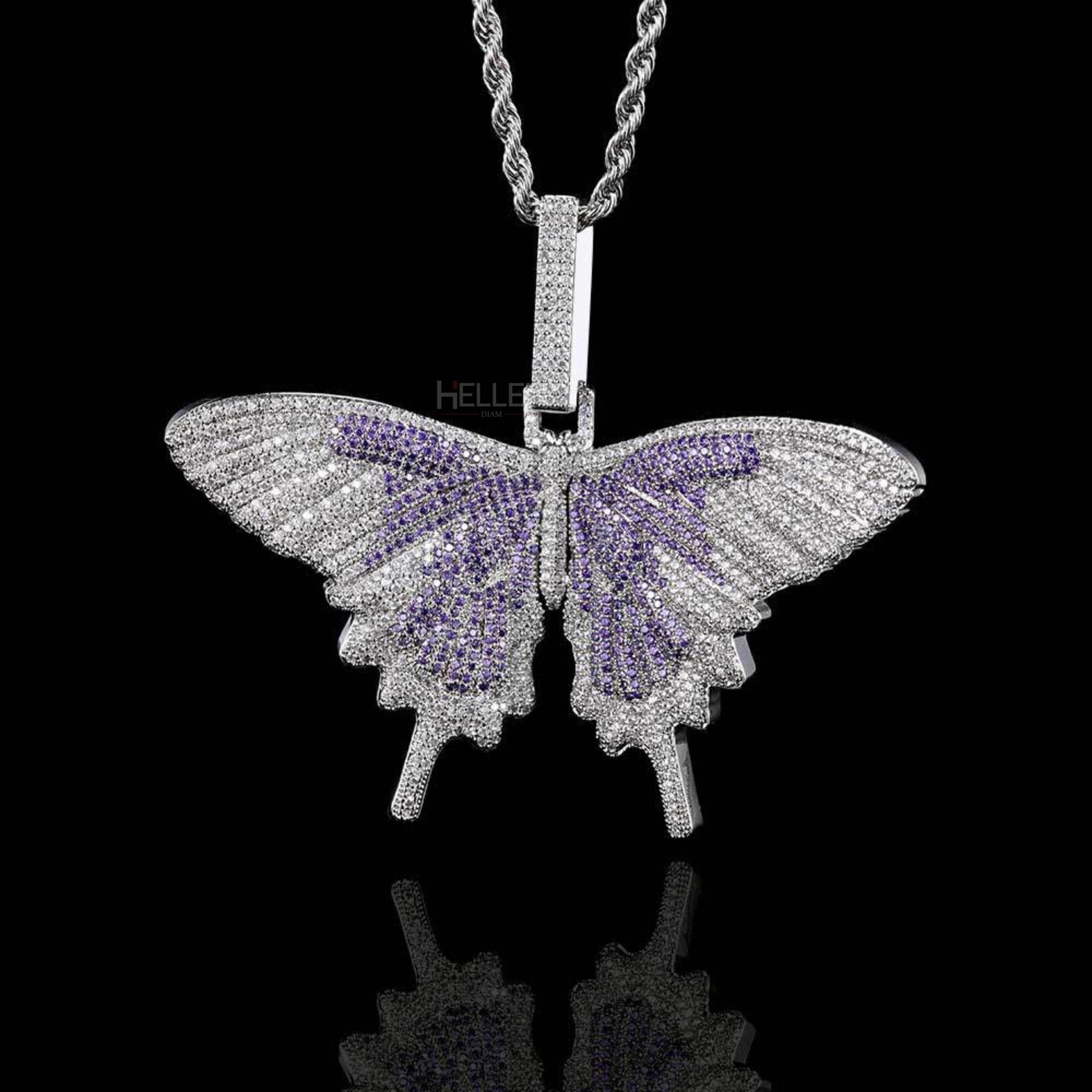 Butterfly Hip-Hop Pendant With Round Cut Moissanites And Gemstone.