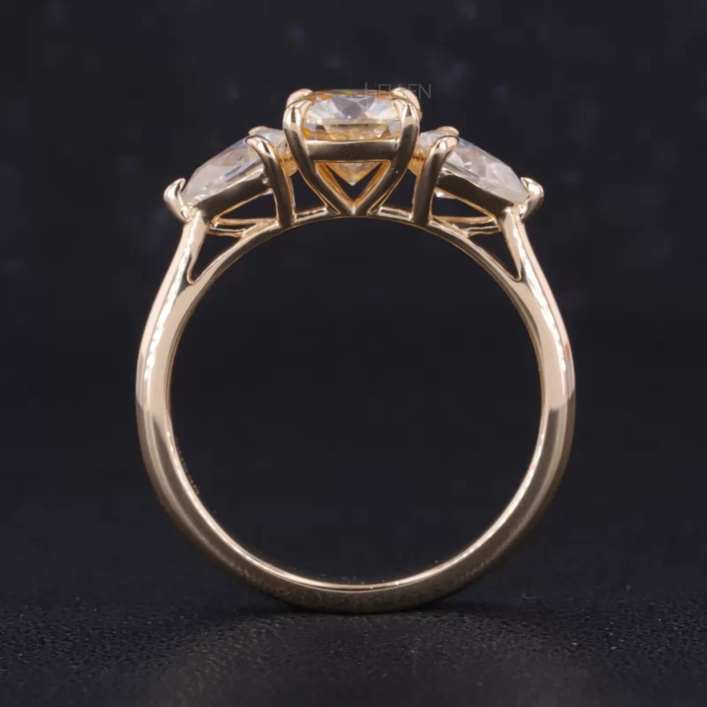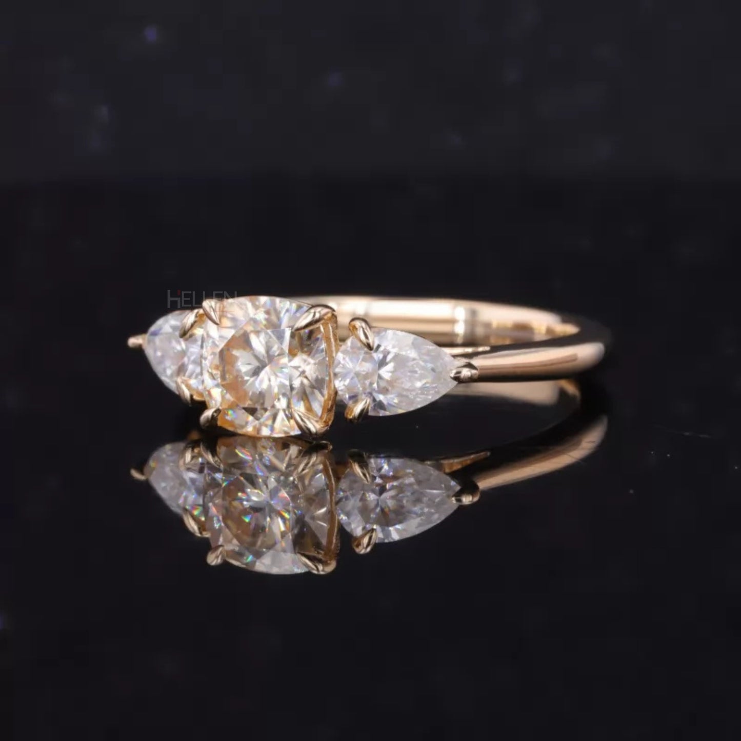 Centre Cushion And Pear Side Moissanite 3 Stone Ring