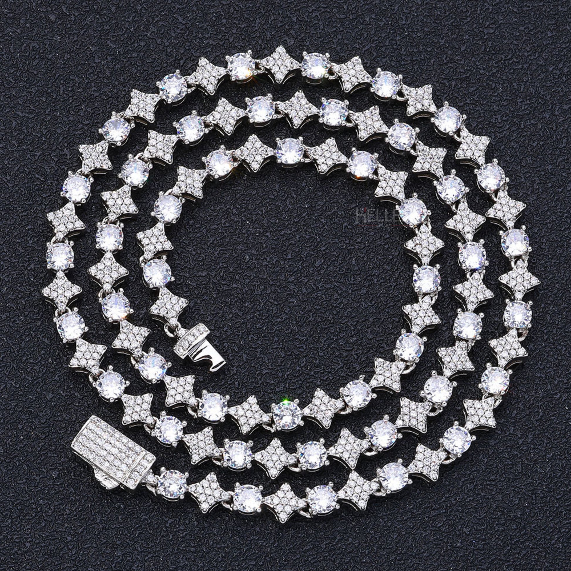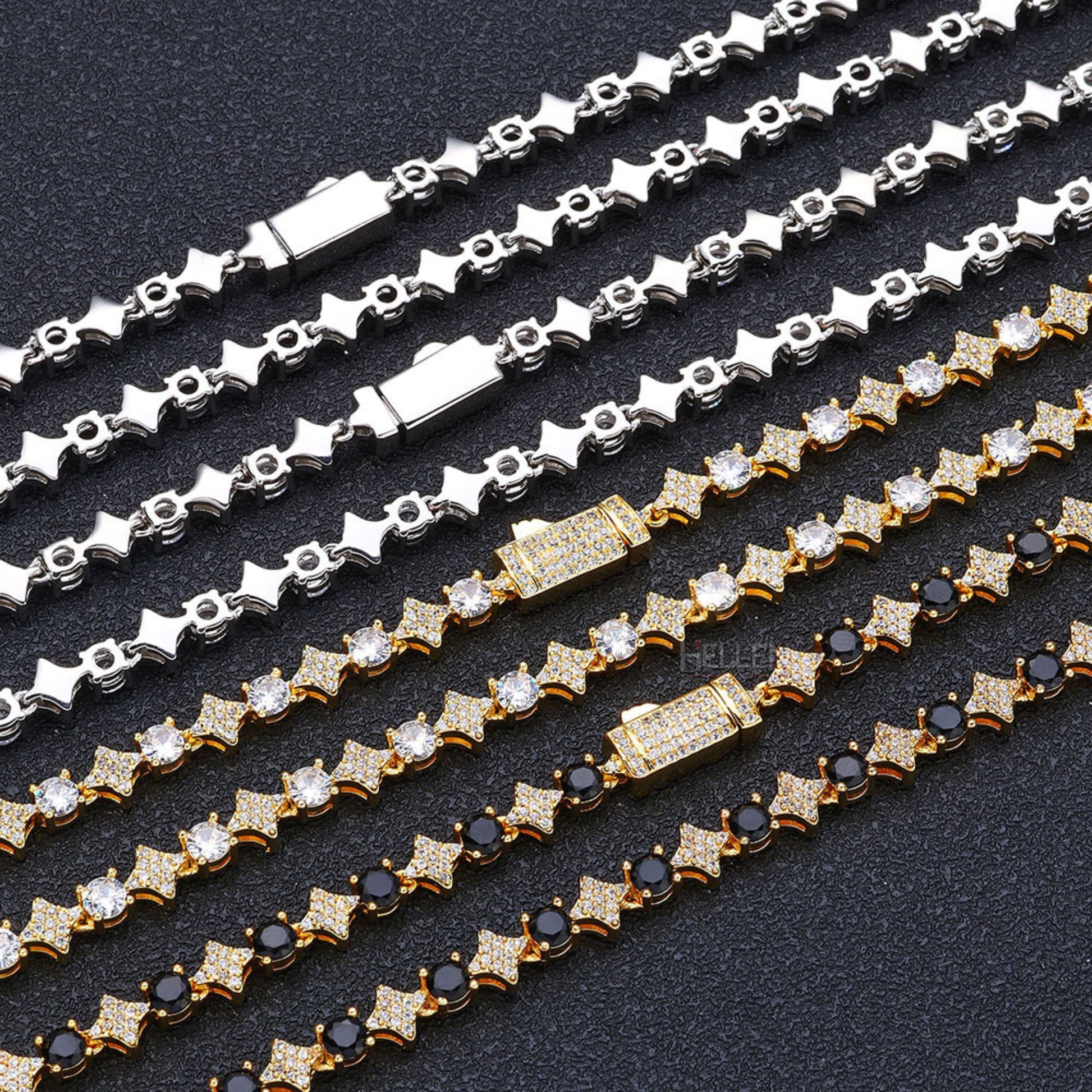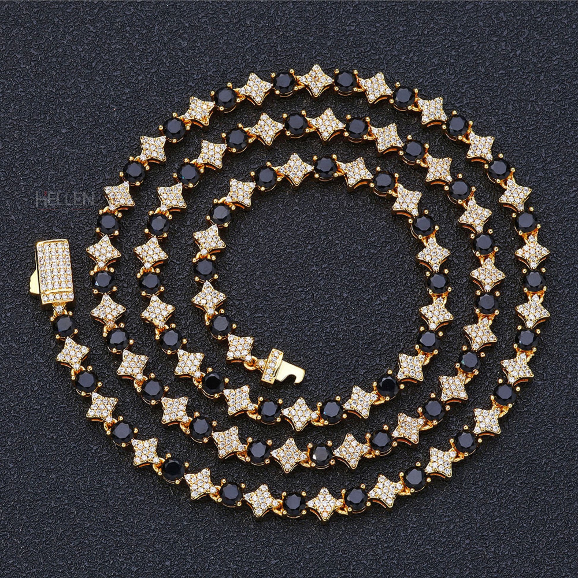 Cluster Pointed Leaf Tennis Chain With Solitaire Black Moissanite