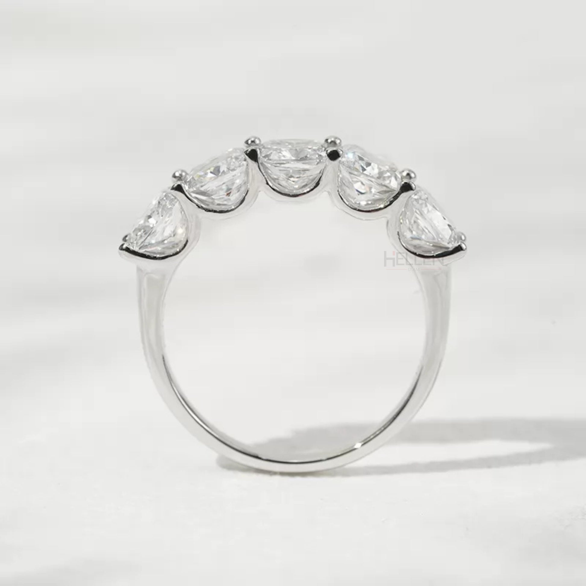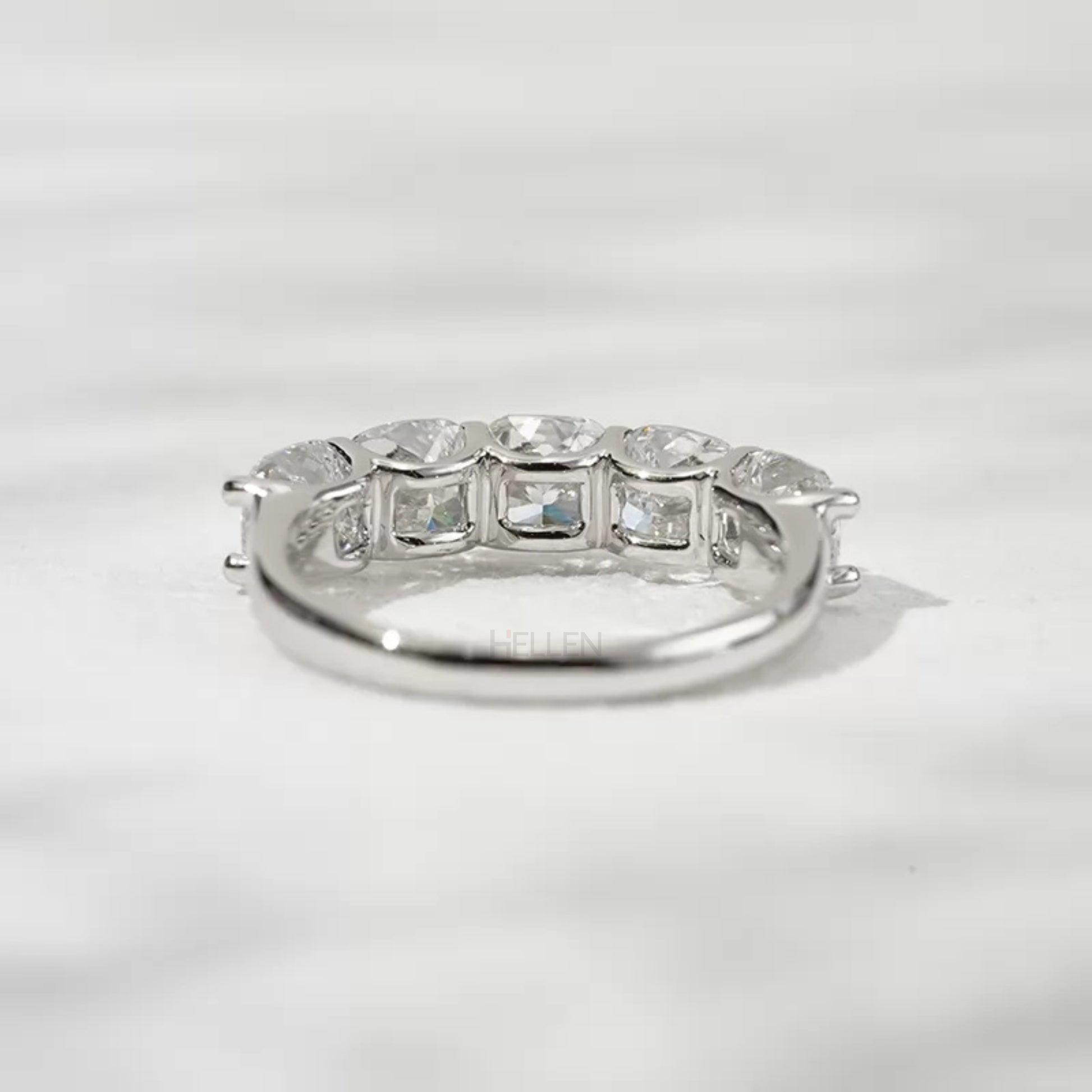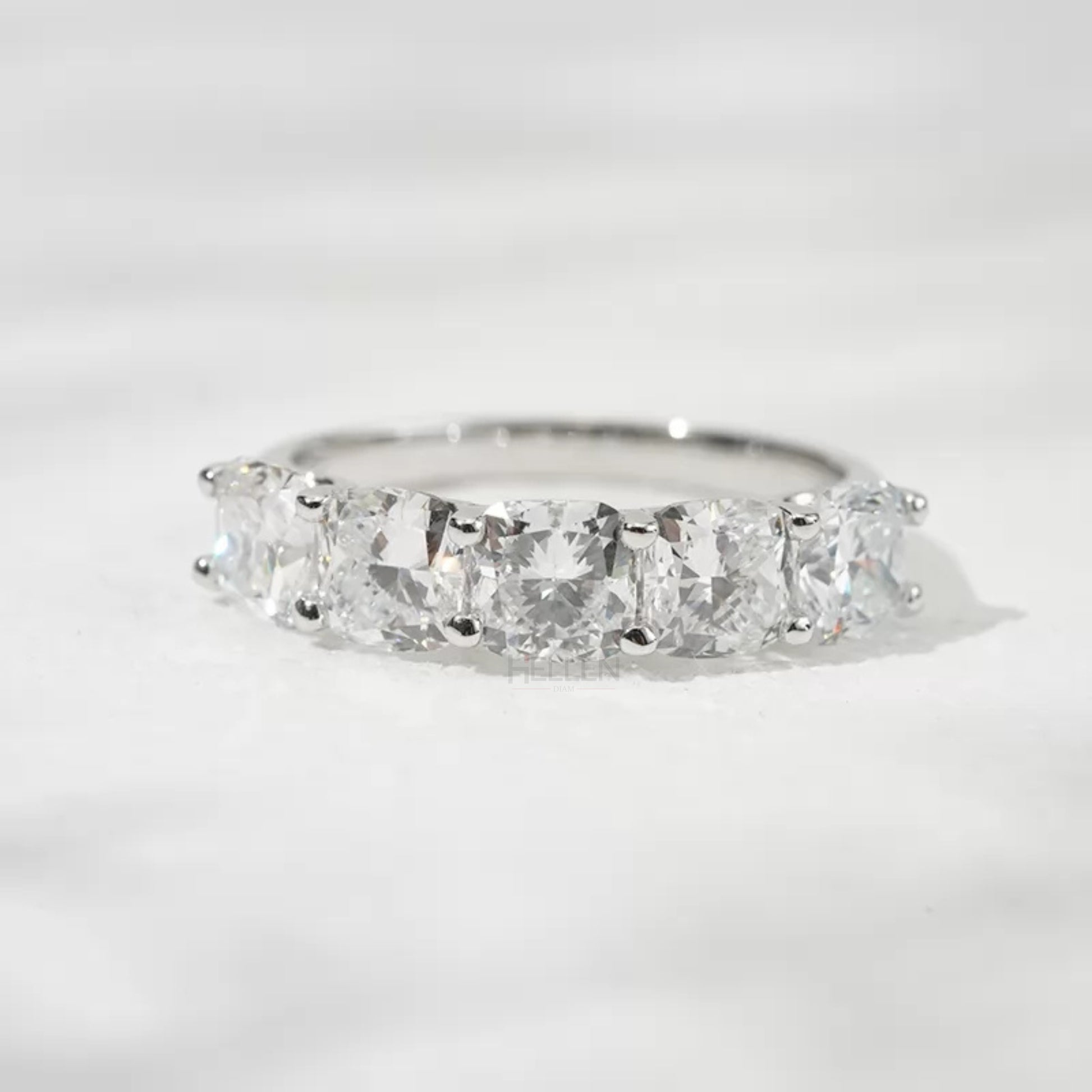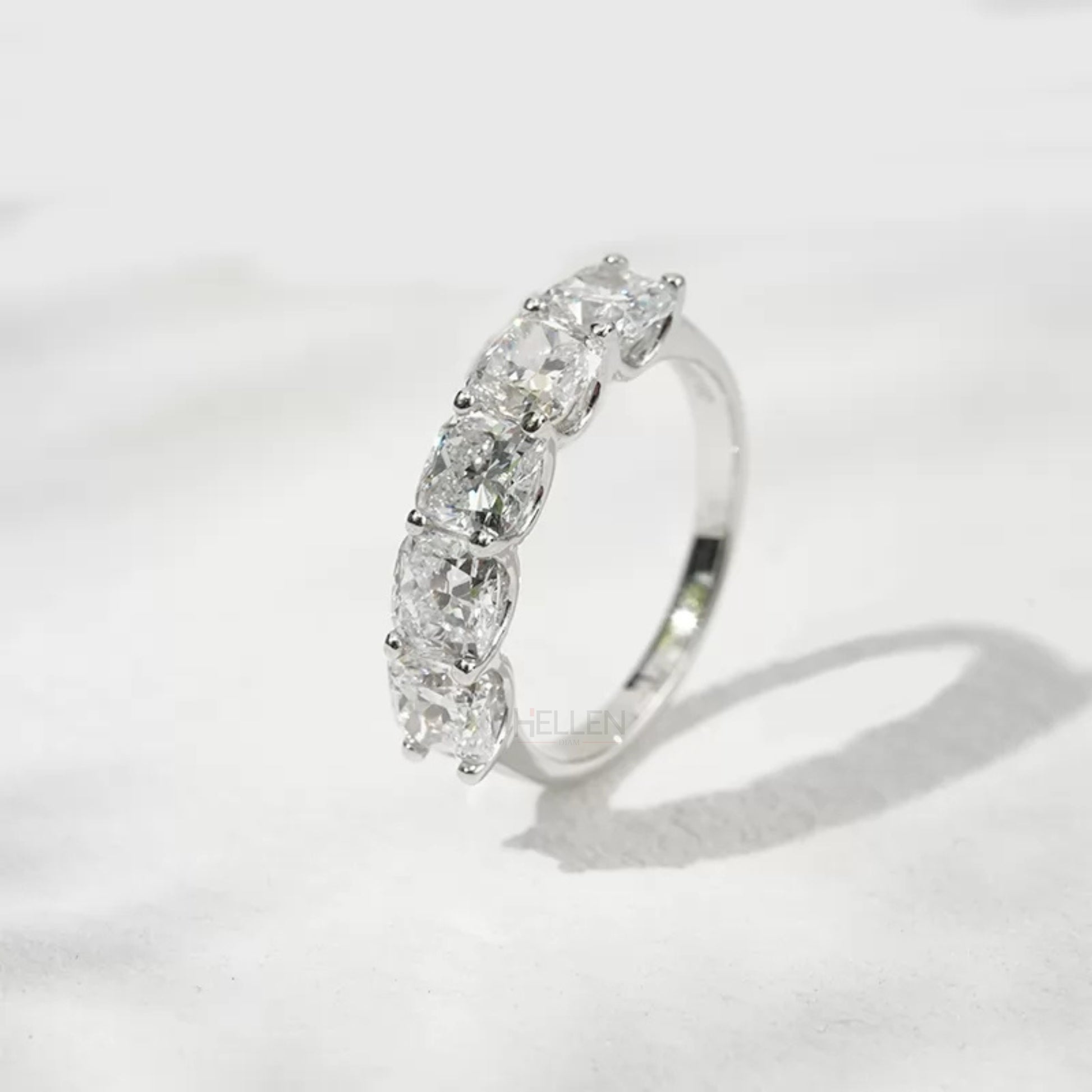 Cushion Cut Five Stone Moissanite Half Eternity Band