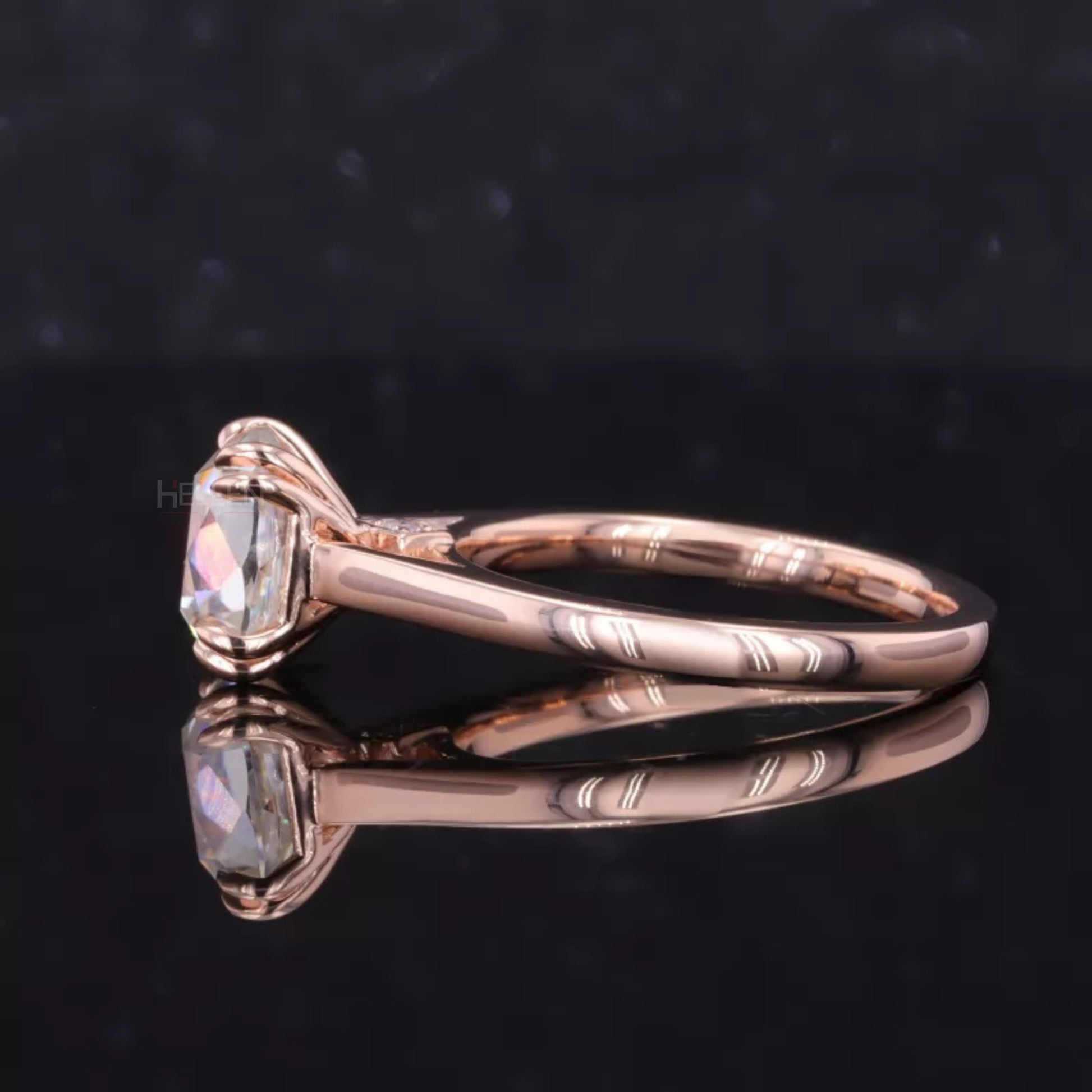 Cushion Cut Moissanite Solitaire Hidden Halo Double Prong Ring