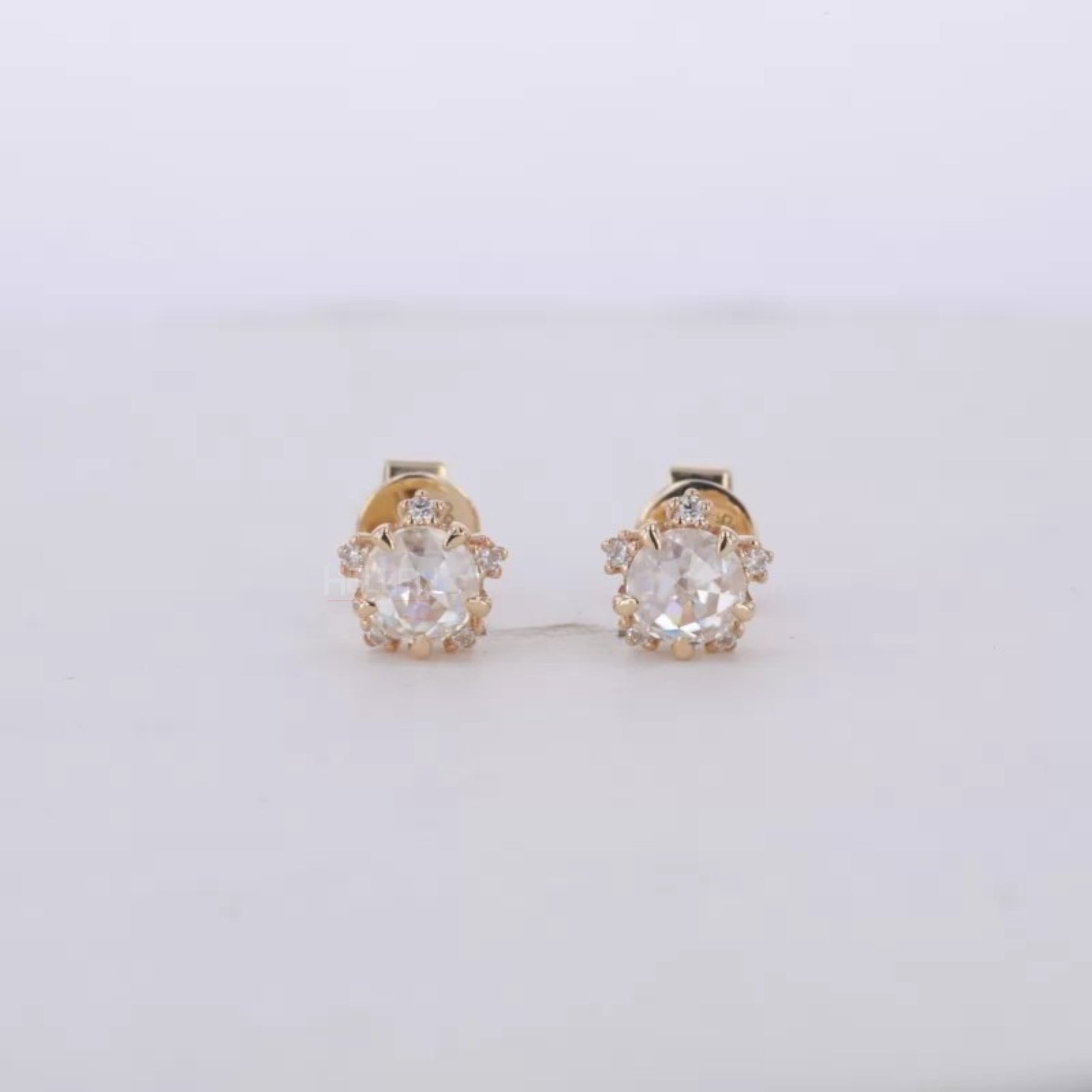 Dainty Snow Inspired Round Rose Cut Moissanite Studs