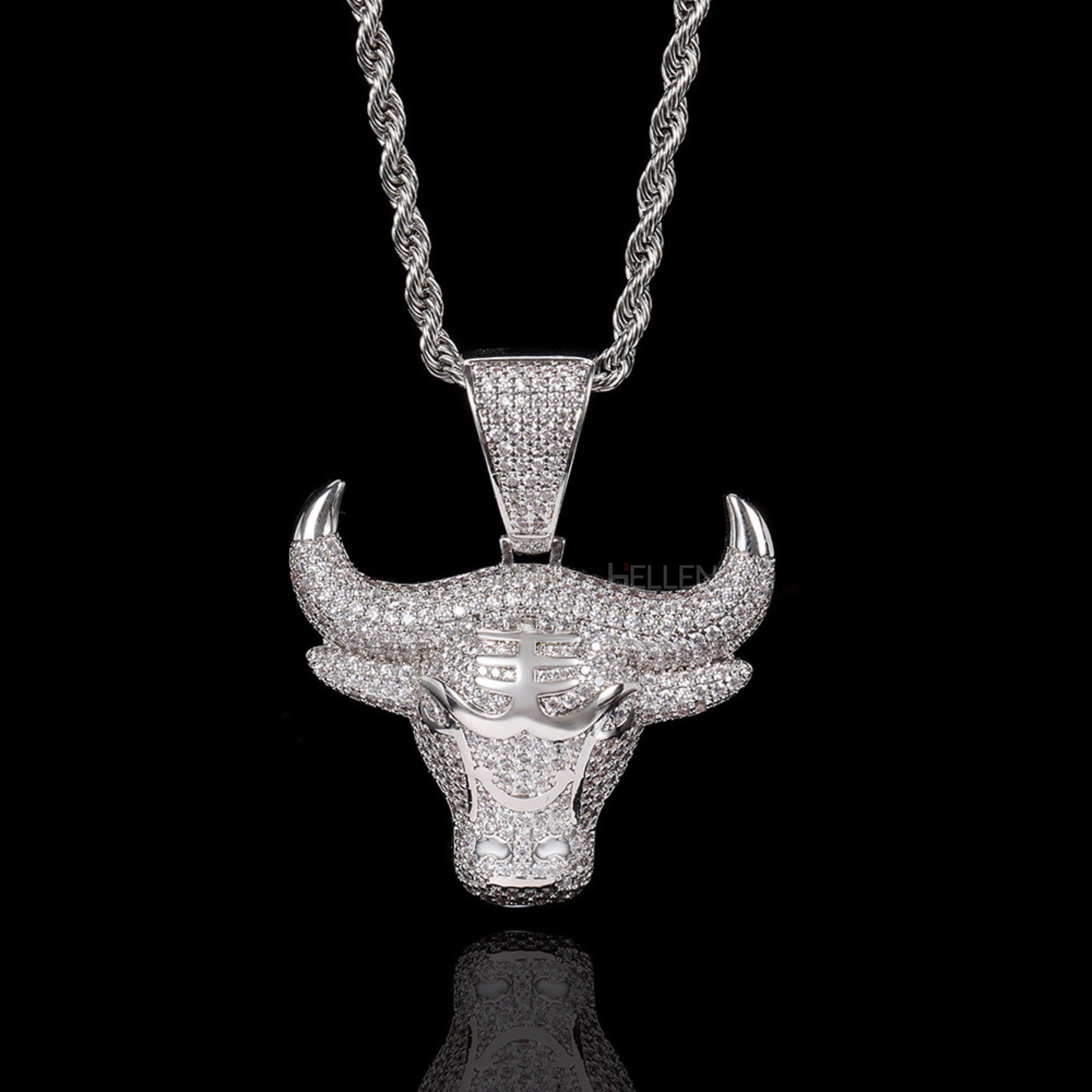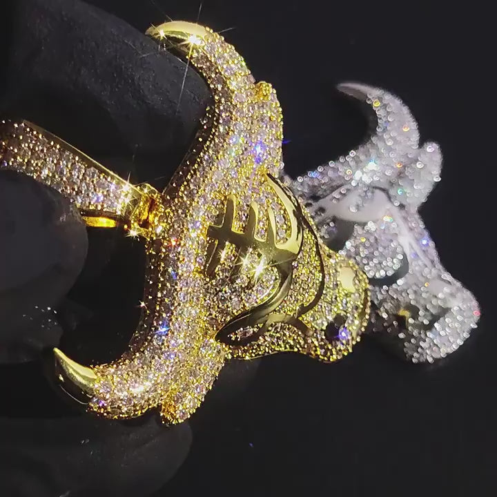 Diamond Studded Bull Head Pendent for Him - 925 Stearling