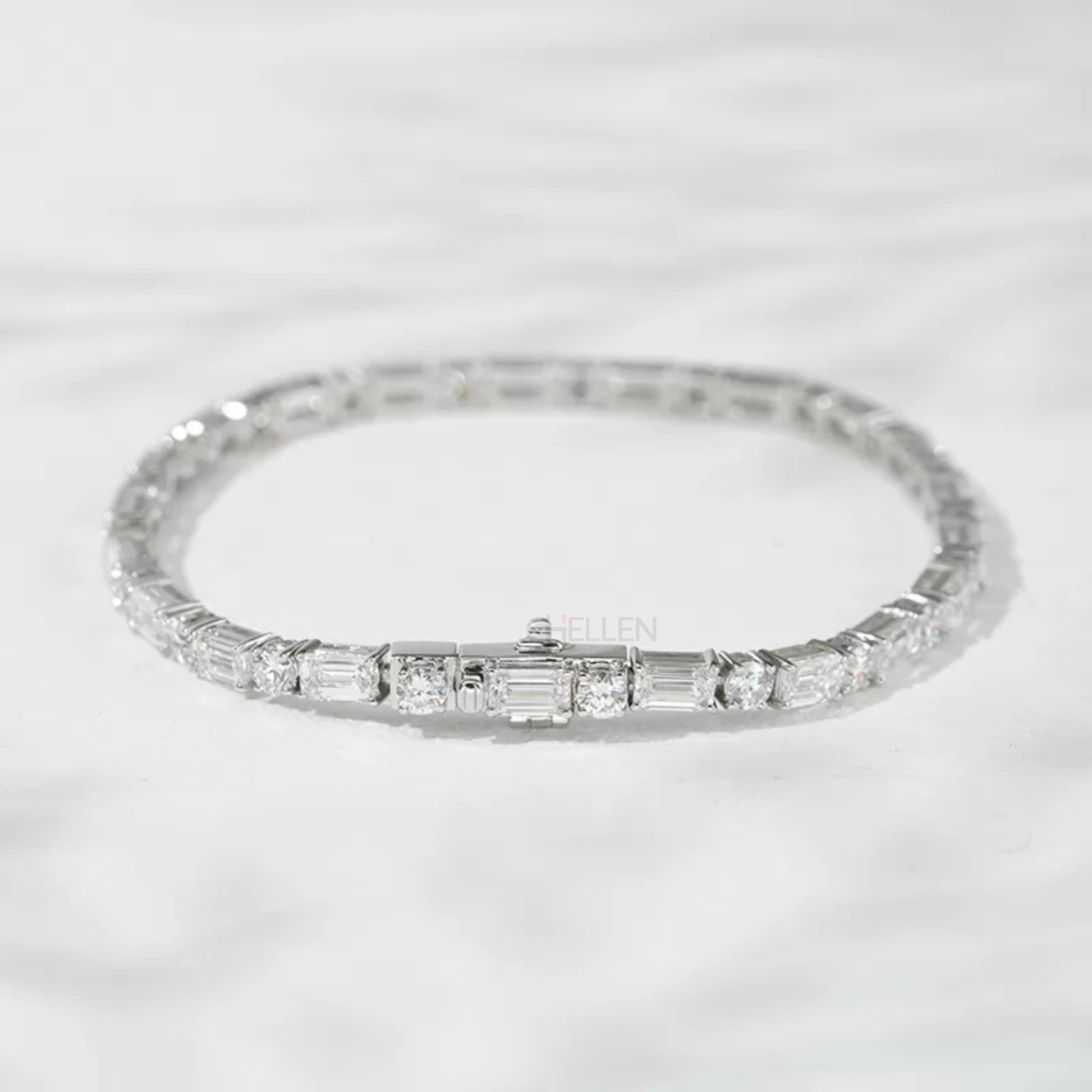 East to West Emerald & Round Cut Tennis Bracelet – 925 Sterling