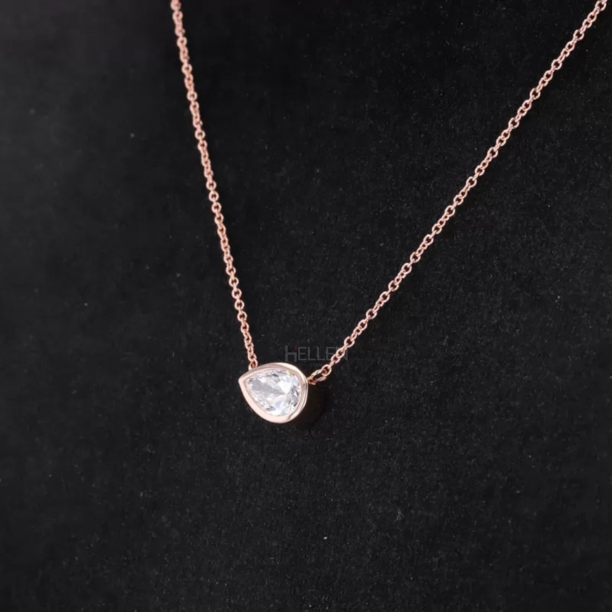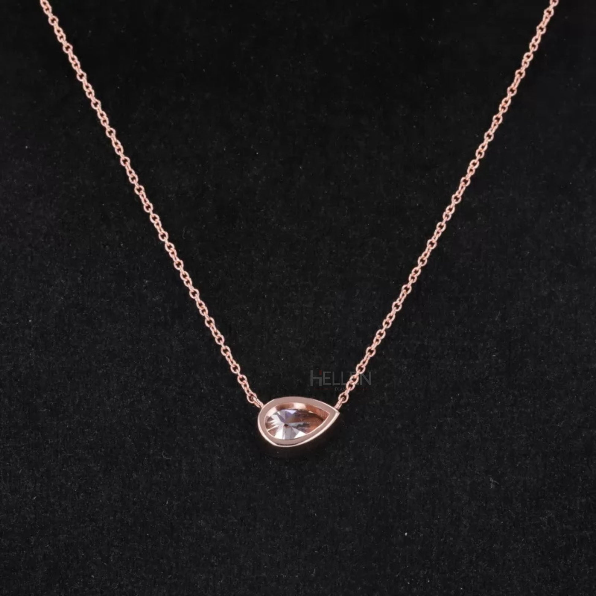 East To West Pear Cut Moissanite Solitaire Bezel Setting Necklace
