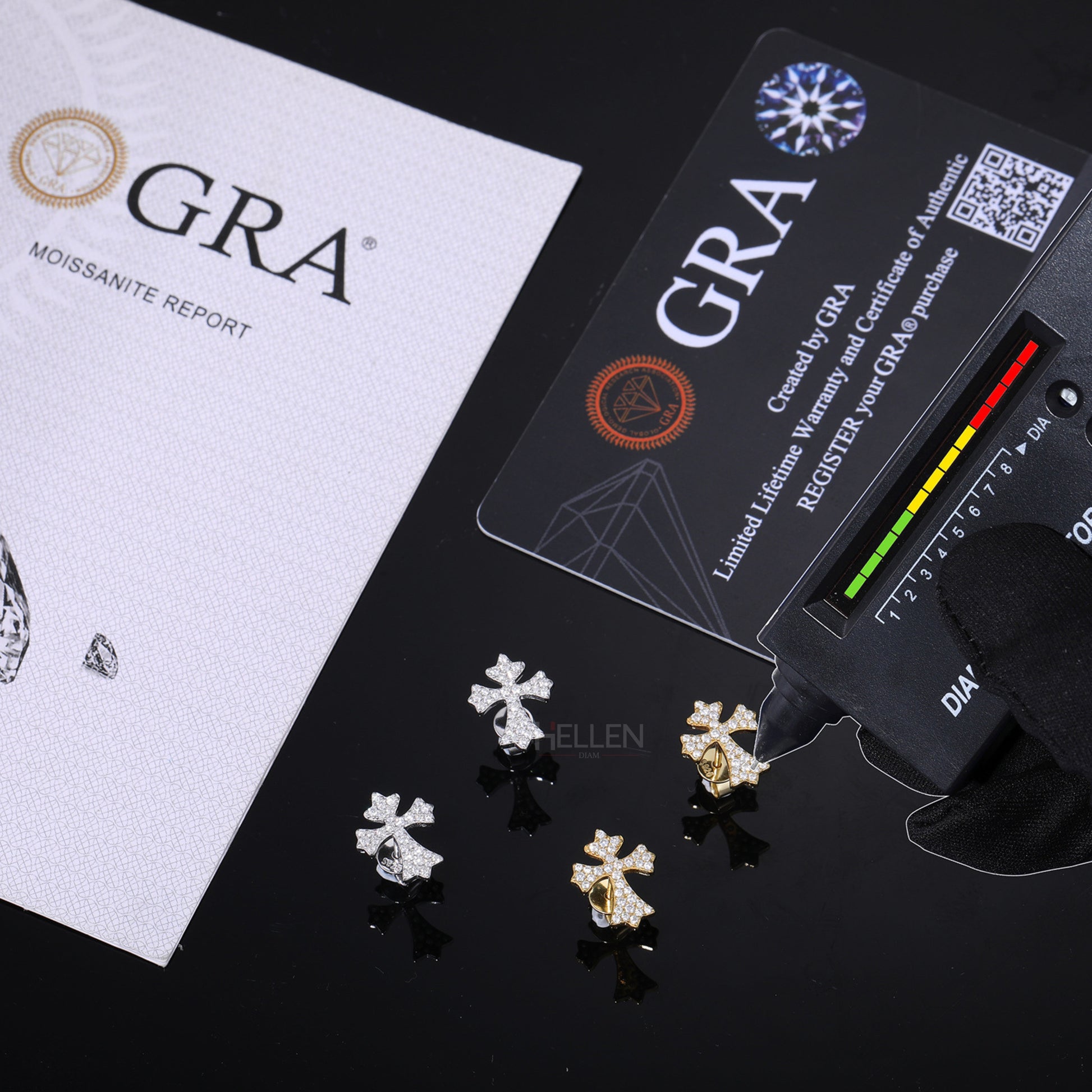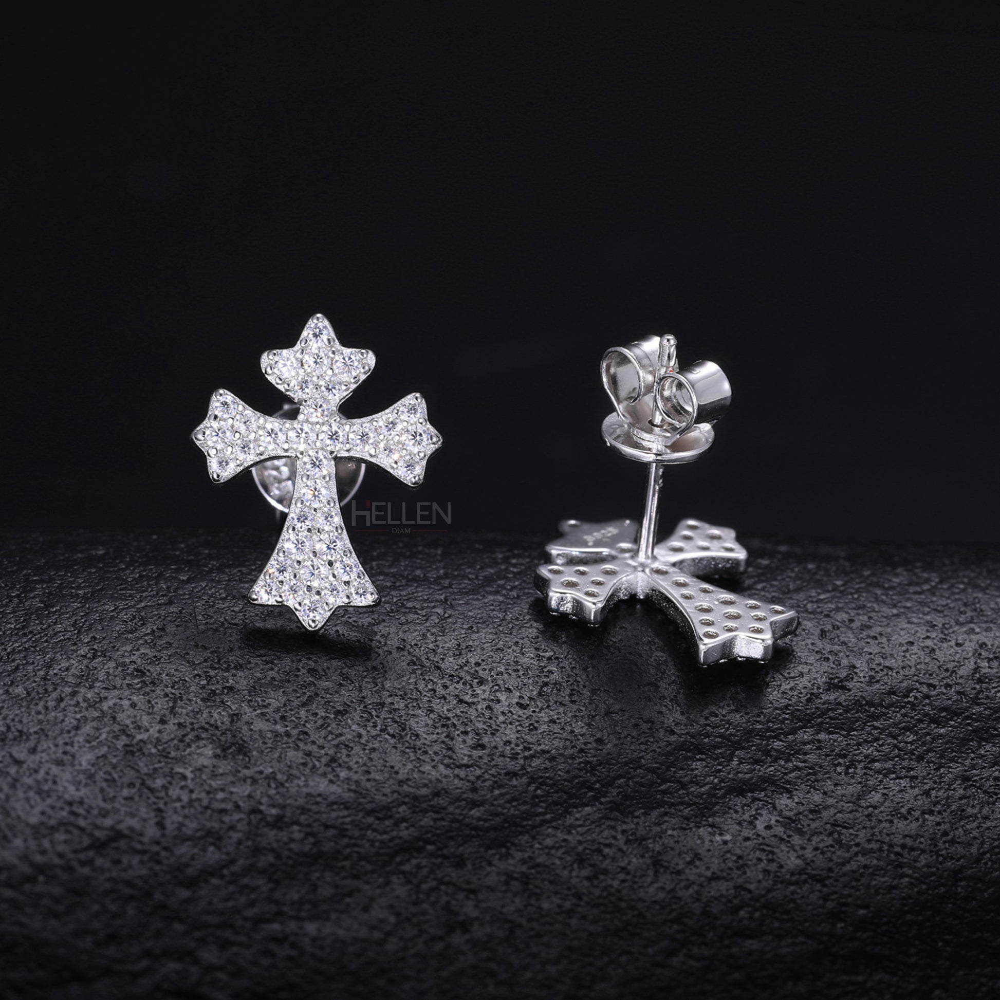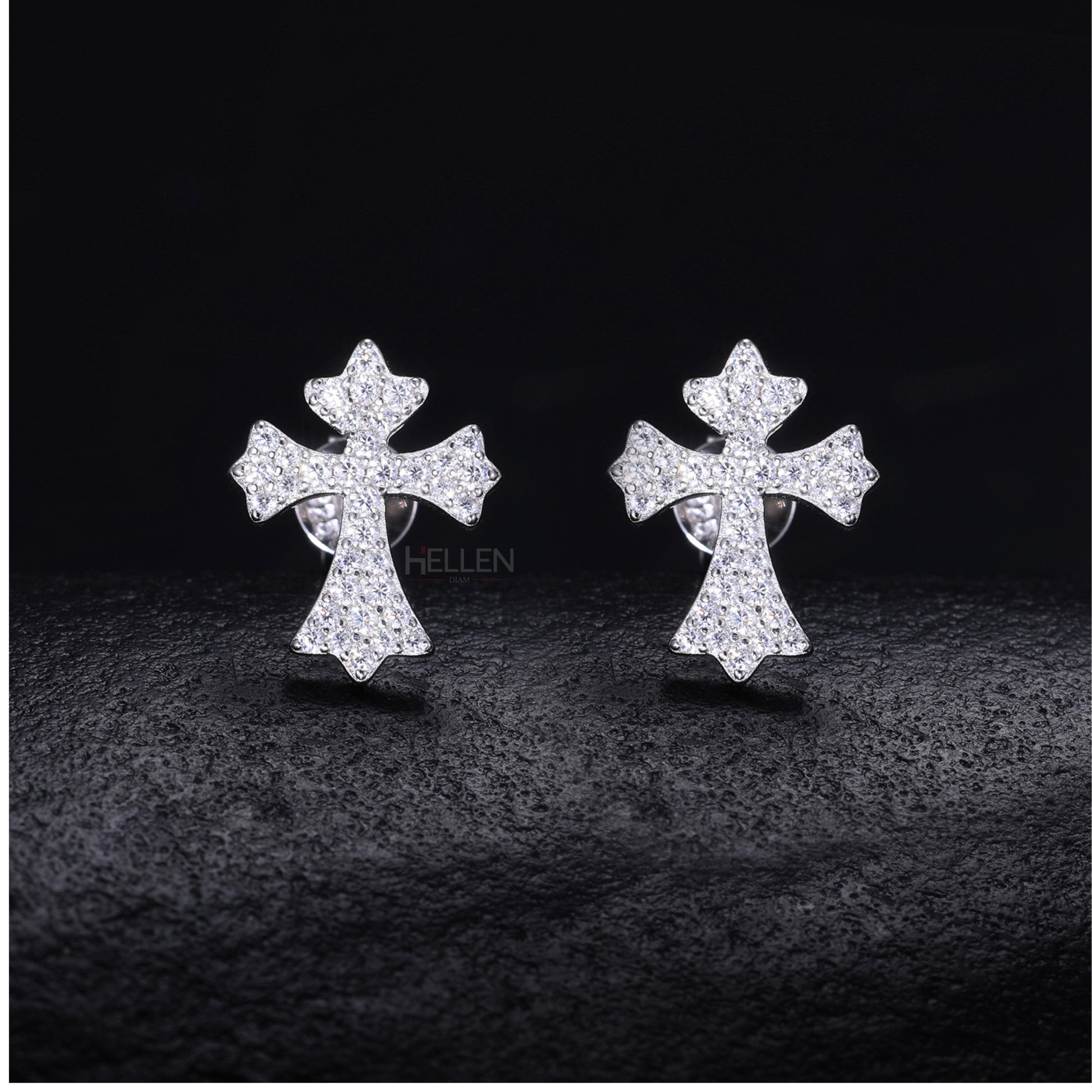 Elegant Round Cut Moissanite Studded Cross Hip-Hop Studs