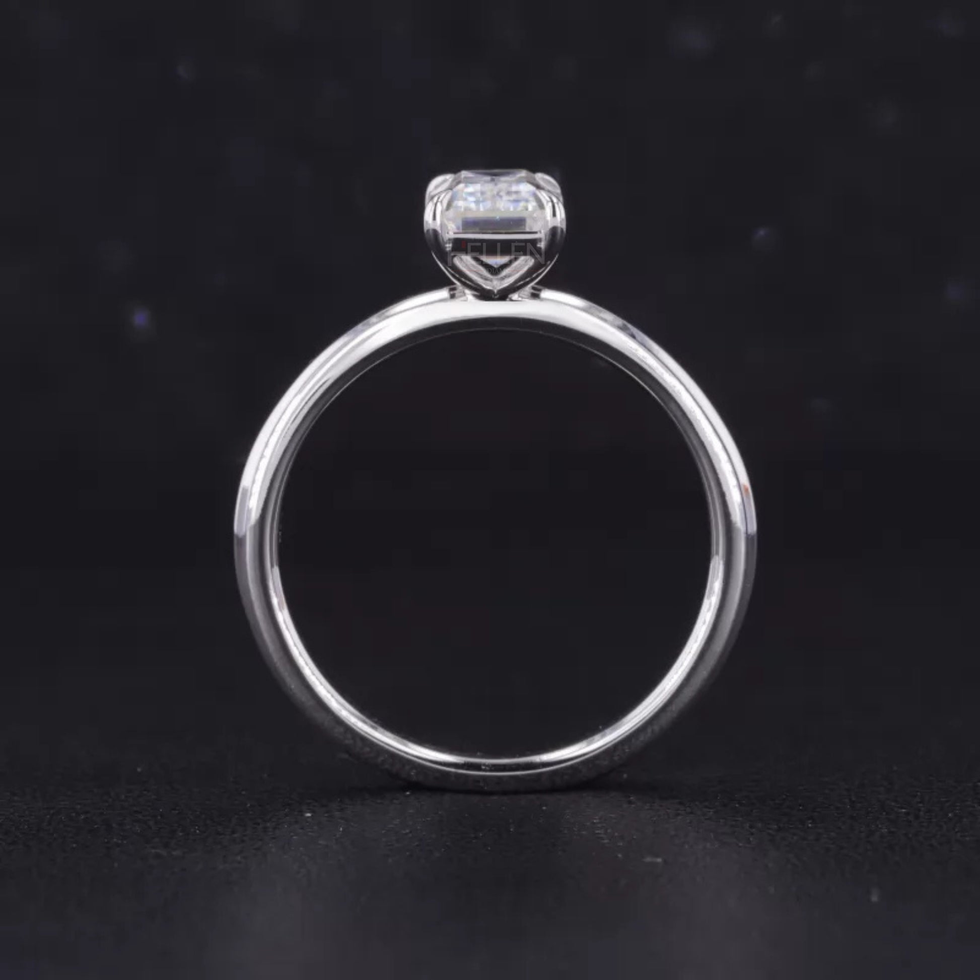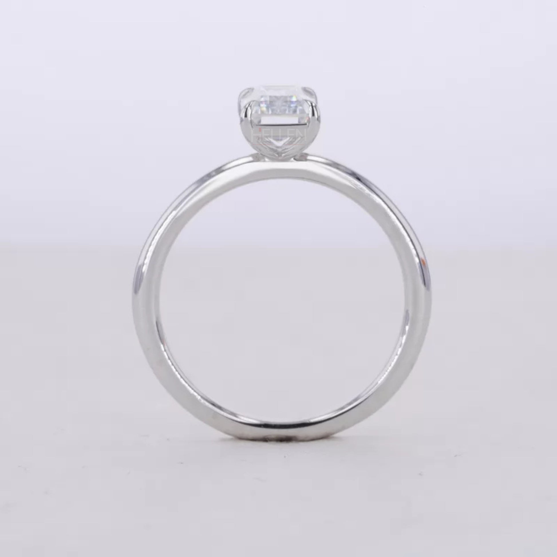 Emerald Cut Moissanite Solitaire with Tiger Prongs 925 Silver Ring