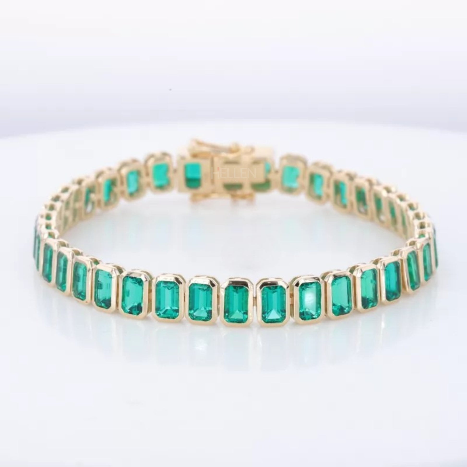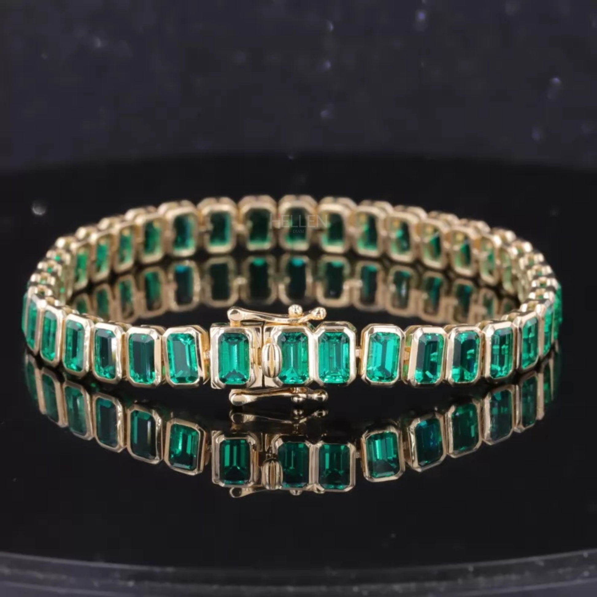 Green Emerald Gemstone Bezel Setting Tennis Bracelet