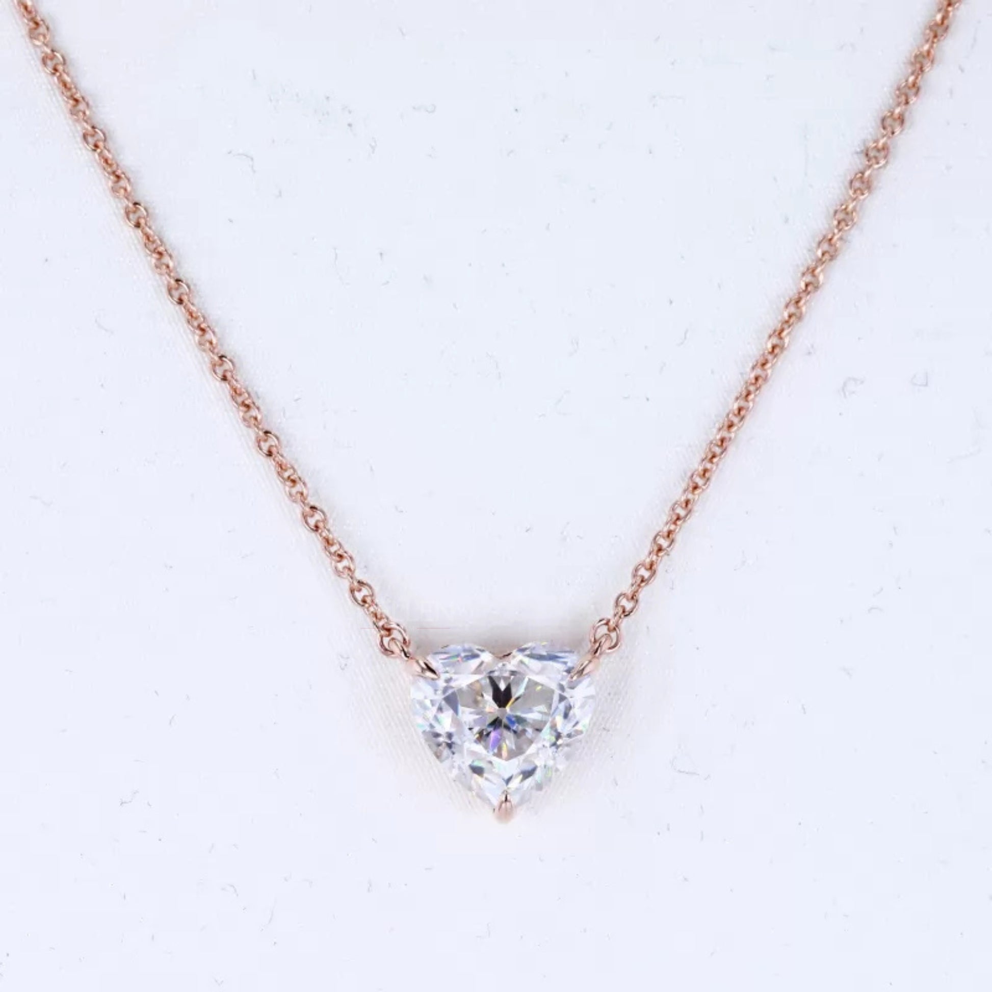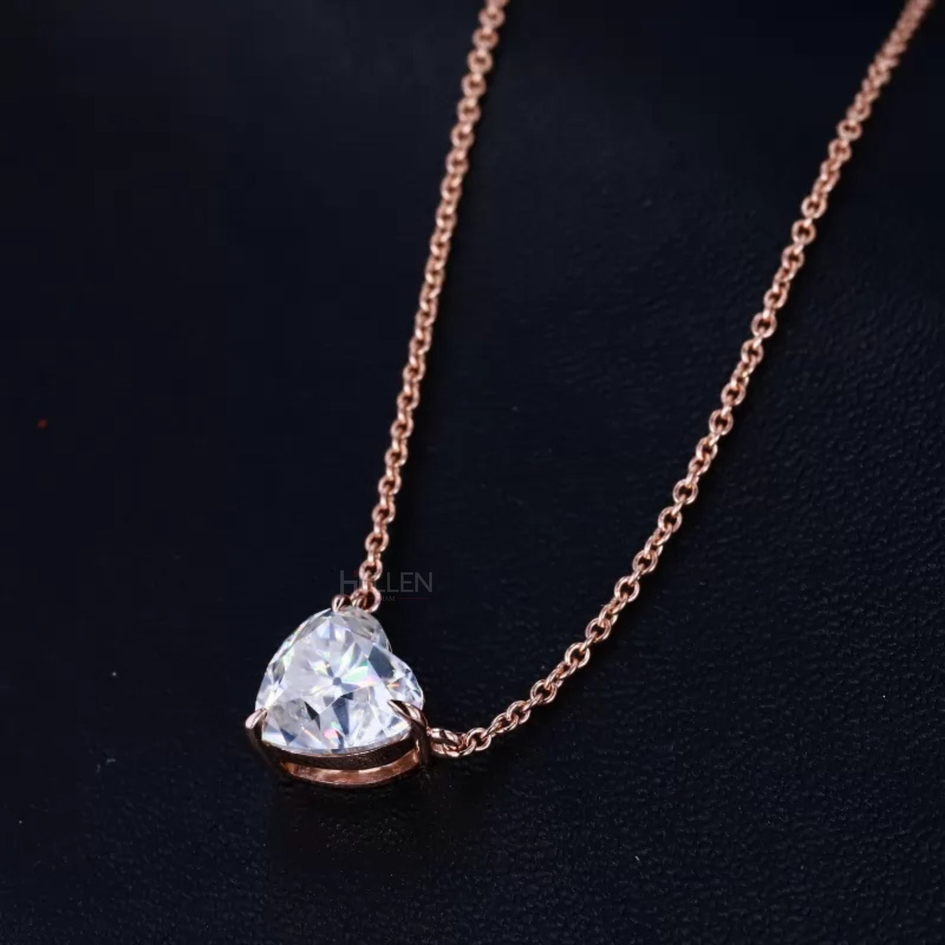 Heart Cut 3 Prong Dual Loop Solitaire Moissanite Necklace