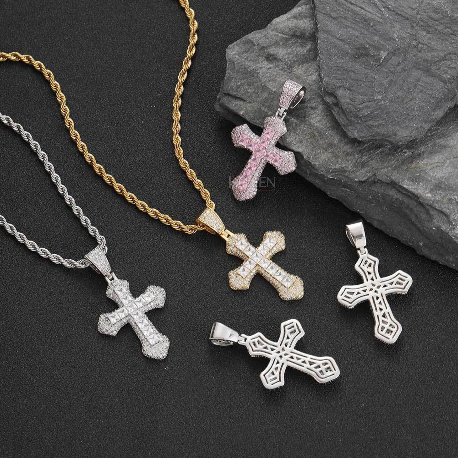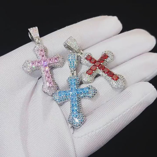 Hip Hop Crossed Pendent With Gemstone And Moissanites of You Choice