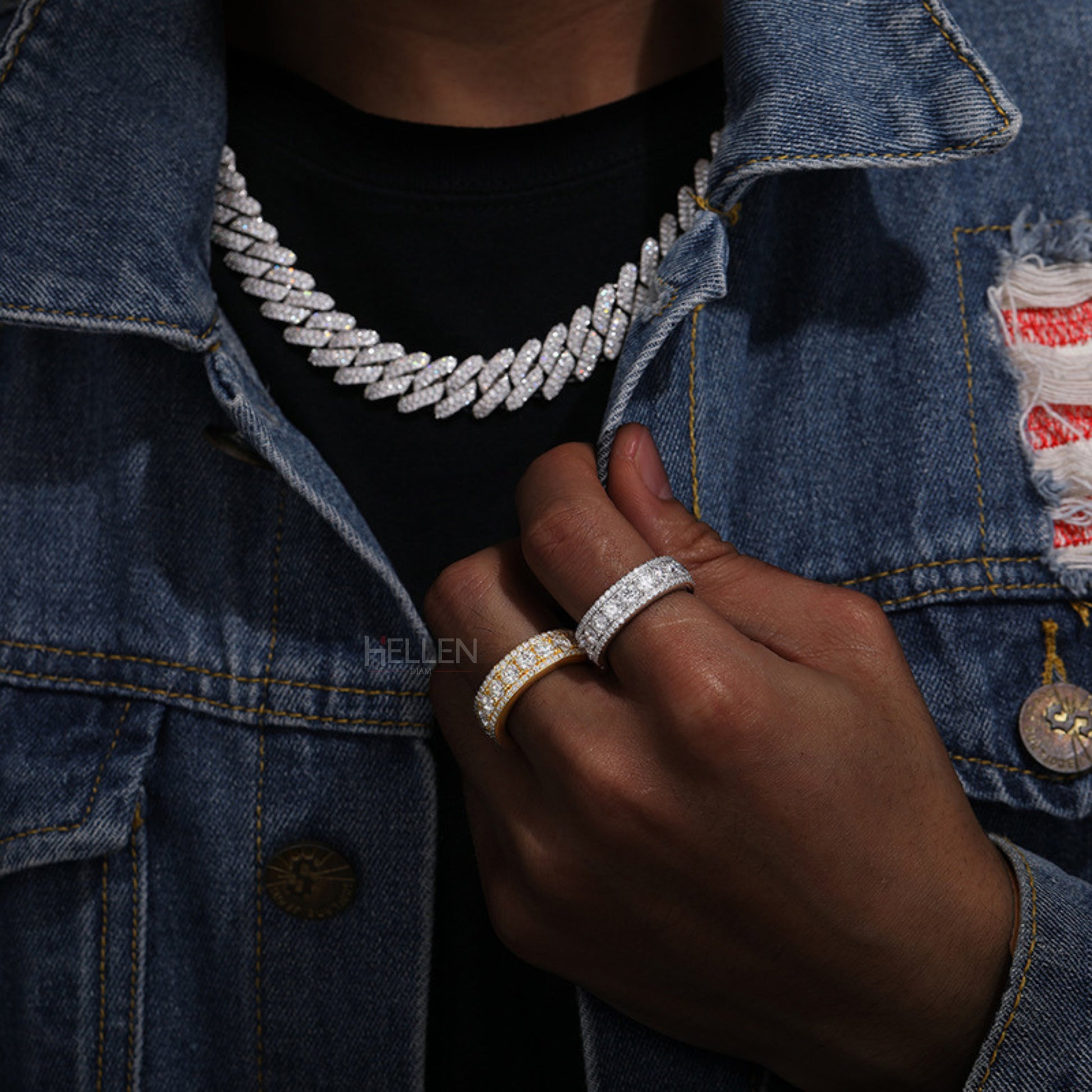 Iced Out Men's Round Cut VVS Moissanite Eternity Band
